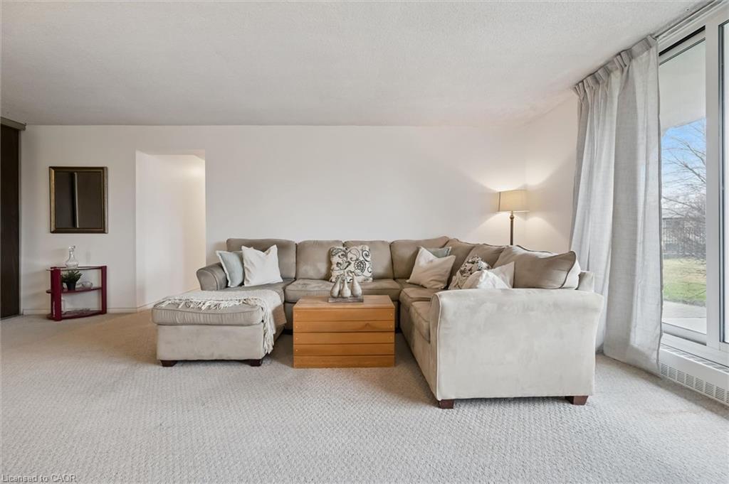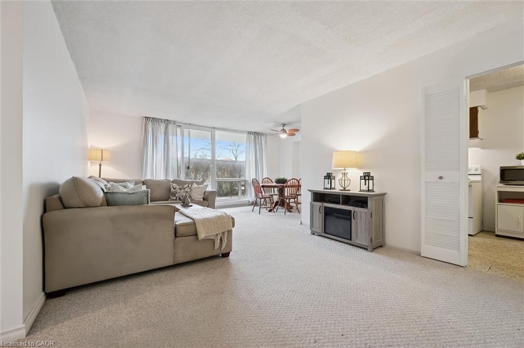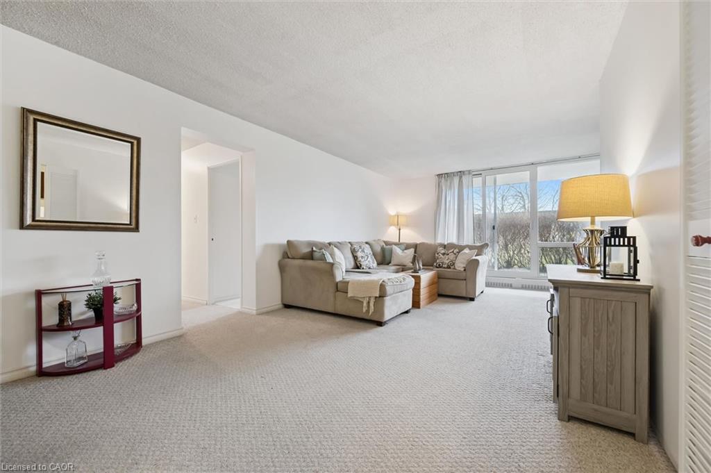 Welcome to Bluevale Tower, where comfort, convenience and lifestyle come together in this spacious freshly painted 2-bedroom, 2-bathroom condo. This bright unit features a wonderful walk-out patio, offering a peaceful outdoor setting to enjoy. Located in Waterloo’s desirable Glenridge neighborhood, this home is just minutes from universities and the expressway, with public transit, shopping only steps from the building - making it an excellent option for seniors, first-time buyers, investors or those looking to downsize. This spacious unit offers a large living room and separate dining area and large windows that span the length and view of the greenery. The primary bedroom offers walkthrough closets leading to a 2 piece ensuite and there is an additional bedroom and 4-piece bath. Included with the unit is one underground parking spot, use of a tennis court, gym, workshop, party room, and library. The added bonus is heat, hydro and water are all included in your condo fees. This is an exceptional opportunity to enjoy spacious, low-maintenance living in one of Waterloo’s most established and convenient communities.