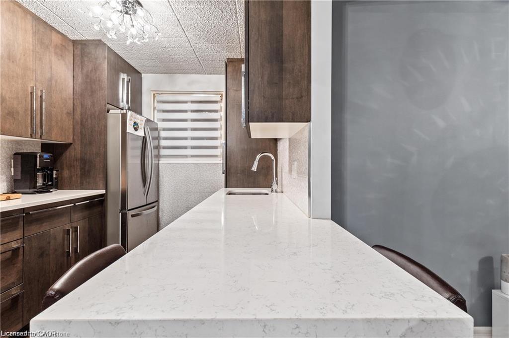 Heat, hydro and more included in your condo fee! Check out this beautifully renovated 2-bedroom condo with convenient in-suite laundry - perfect for first-time buyers, downsizers, or investors. The open-concept layout showcases upgraded flooring, quartz countertops, designer light fixtures, and a modern kitchen that flows seamlessly into the spacious living and dining areas. Step out onto your private balcony to relax and unwind. The unit features a full 4-piece bathroom and a rough-in for a future 2-piece bath. The bathroom has been tastefully remodeled, and the impressive primary bedroom offers double closets for optimal storage. A same-floor storage locker provides additional space, and a dedicated parking spot is included for your convenience. With low property taxes and affordable condo fees that include heat and hydro, this home offers exceptional value. Located in the heart of Kitchener, this turnkey home offers easy access to highways, shopping, and all amenities - an incredible opportunity you won’t want to miss!