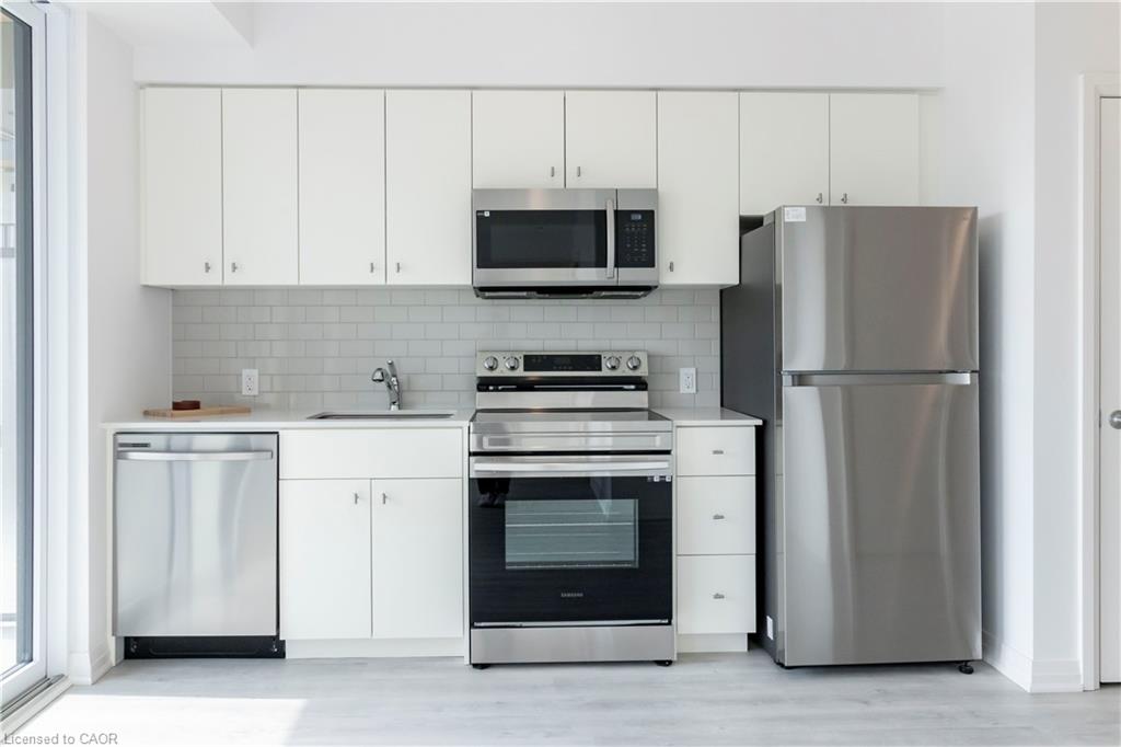 Modern West Coast Feel Meets North Waterloo Luxury — Welcome to Unit 316 at The Jake, experience the perfect blend of form and function in this Brand New never-lived-in 1-bedroom + den, 640 sq ft suite on the 4th floor of The Jake—North Waterloo’s boutique condo development by VanMar that channels the West Coast through warm wood accents, clean modern lines, and lush, curated landscapes. This open-concept layout offers a thoughtful flow of space, featuring a large primary bedroom with 2 large closets for maximum clothing storage & accessibility, as well as a separate private bedroom balcony. The bright, airy main living area spills out onto a large main balcony—ideal for morning coffee or evening wind-downs. Whether you need a private work-from-home office space, a creative studio, the den adds flexibility without sacrificing space or style. Building amenities include: boutique coworking lounge, pocket gym with Peloton, integrated parcel lockers, and more! Enjoy the convenience and ease of condo living, steps from everyday essentials: Sobeys, Starbucks, Shoppers, State & Main, a 24 hr gym, St Jacob’s Farmer’s Market, and the Northfield LRT stop connecting you to Waterloo’s tech corridor and beyond. Built with VanMar Development’s signature attention to detail and craftsmanship, Unit 316 is your chance to live where natural beauty, thoughtful design, and urban energy intersect.
