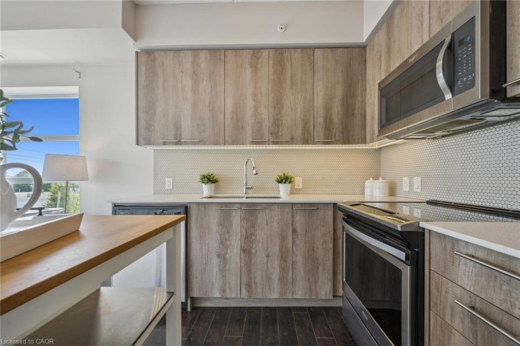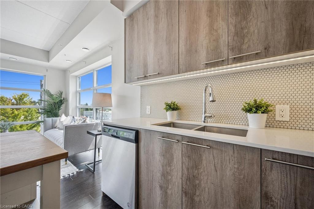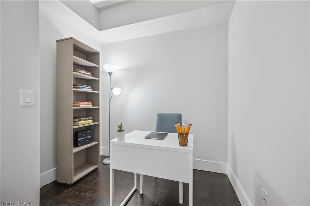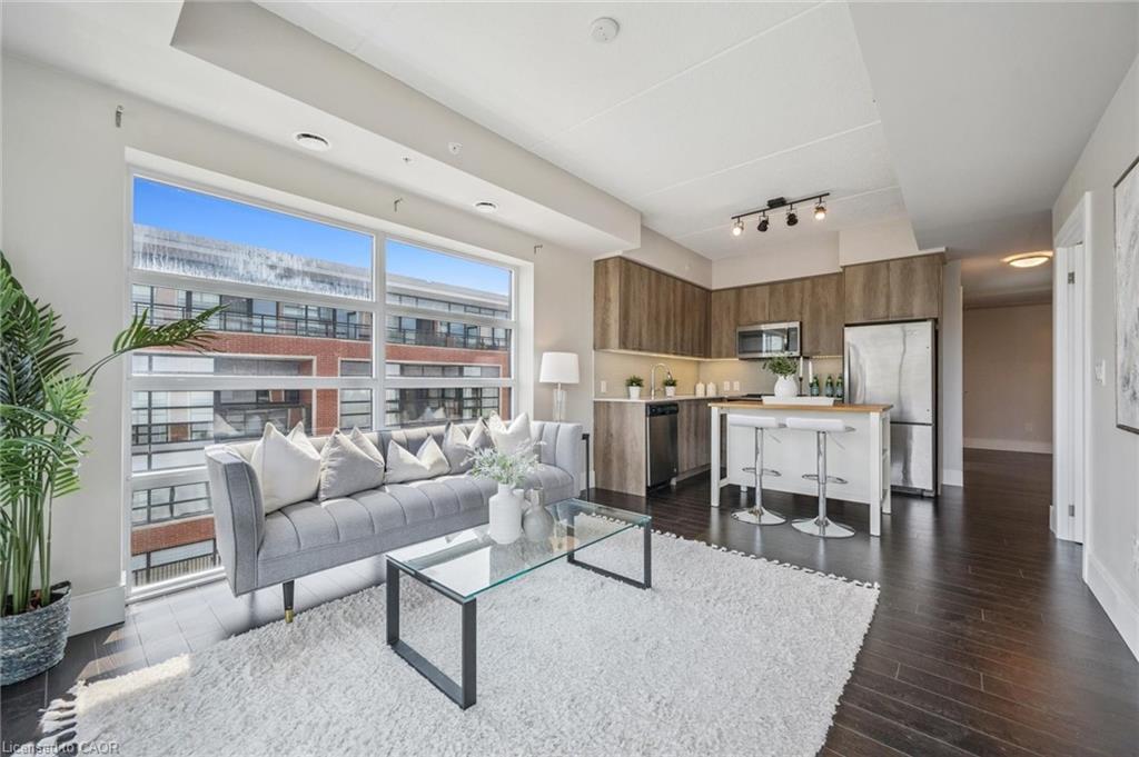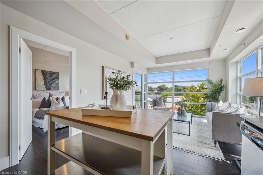 Welcome to this stylish 2-bedroom, 2-bathroom plus den condo, perfectly located between Uptown Waterloo and Downtown Kitchener. Offering880 sq. ft. of well-designed living space, this bright and airy unit features floor-to-ceiling windows and soaring 9-foot ceilings that fill the home with natural light. The open-concept layout provides a spacious living area, ideal for both relaxing and entertaining. The modern kitchen boasts sleek finishes and ample storage, while the versatile den offers the perfect spot for a home office or reading nook. The primary bedroom includes a private ensuite, and the second bedroom and full bathroom are perfect for guests or family. Enjoy the convenience of condo living and being just minutes from vibrant shops, restaurants, public transit, and scenic trails—all from a contemporary building with excellent amenities.
