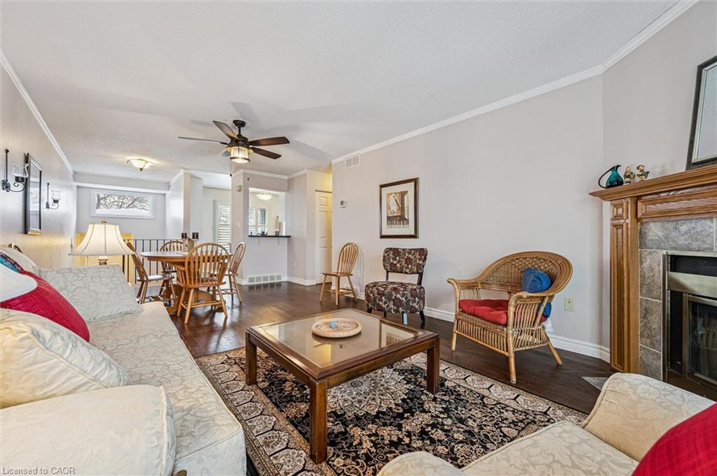 Bungalow townhouse with 2 bedrooms and 2 bathrooms. Entering this home you have a two storey foyer, bright open main area. Kitchen offers a double sliding door pantry, beautiful white cabinets, stainless appliances, breakfast bar and a walkout to a balcony. Hardwood floors throughout except bathrooms and laundry, living room with a wood fireplace and a walkout to a deck, main bedroom has a walkin closet and an updated three piece ensuite bathroom. There is also a four piece main bathroom and a second bedroom with a large closet. An attached garage is also a great feature with this home.