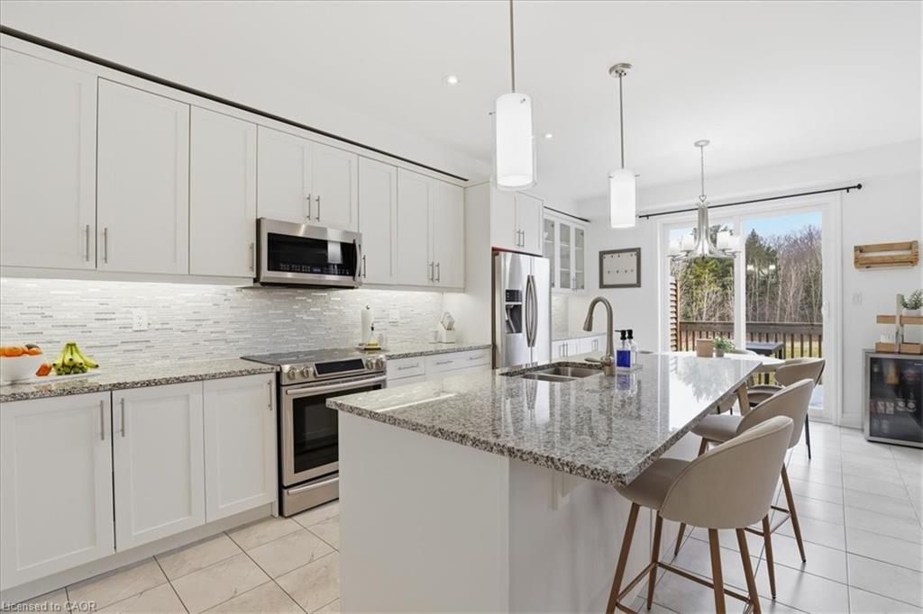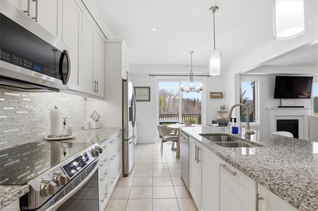 If location matters most then THIS is your new HOME! Literally 400 steps to Janet Metcalfe Public School (yes, I paced it off) and a stone's throw from the serene Williamsburg Woods West! It doesn't stop there. Only a 5 minute drive to the NEW RBJ Schlegel Multiplex family entertainment park. This 2250 square foot, one owner, beauty is chalk full of upgrades and extras. You are going to fall in love with the main floor, open concept layout. Check out the kitchen! A huge, granite topped centre island, bright white cabinets, undermount sinks, Over the Range microwave and 3 appliances included! The huge Great Room is warmed by the gas fireplace and is pre-wired for your surround sound system. An amazing walk-in pantry with built-in organizers and a 2 piece powder room complete the layout. All flooring on the main floor is a combination of dark, oak hardwood and gorgeous ceramic tile. Let's explore the upper level. Your Primary suite features a walk-in closet PLUS a second double closet and a fantastic 5 piece deluxe ensuite. A 7 foot quartz counter with 2 undermount sinks, a deep soaker tub with handheld water wand and a separate ceramic tiled shower complete your retreat! The laundry room is conveniently located on the 2nd floor too. Have you been looking for a perfect "in-law" set up? The custom designed basement will work perfectly for you. Featuring a 2nd walkout, a fully functional kitchen with Raywal cabinets, glass backsplash and appliances and a large 3 piece bathroom with a step in shower, ceramic bench seat, a faux marble topped vanity and a slate tile floor! There is a 2nd laundry facility in the basement for convenience too! In 2019 an "on ground" salt water pool was installed and offers a perfect Summer getaway for you and your kids! Other outstanding extras include a 200 amp electrical service, a VanEe air exchanger, water softener and garage door opener! Don't wait to see this one.