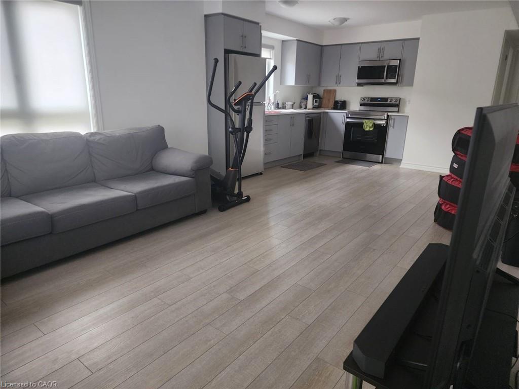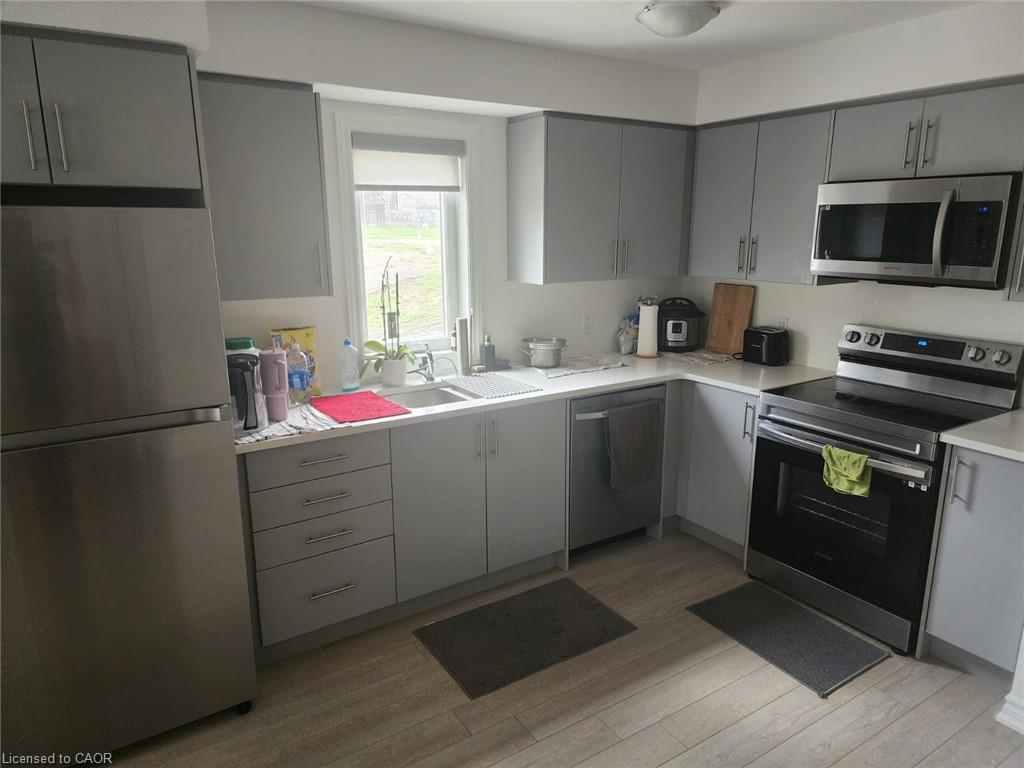 Welcome to 235 Chapel Hill Drive, a beautifully designed end-unit townhome for lease in the highly desirable Doon South community of Kitchener — one of the city’s most sought-after neighbourhoods known for its family-friendly atmosphere and easy access to amenities. This modern, carpet-free main-level unit offers a thoughtfully designed open-concept floor plan with an abundance of natural light and functional living space throughout. Only a few years old, the home features a bright living and dining area that flows seamlessly into a contemporary kitchen, making it an ideal setting for both everyday living and entertaining guests. The kitchen is equipped with stainless steel appliances, ample cabinetry, and plenty of counter space — a perfect blend of style and practicality for anyone who enjoys cooking or hosting. Large windows invite natural light and offer peaceful green space views, creating a calming environment that helps you unwind after a long day. This inviting unit includes two generous-sized bedrooms, each offering ample closet space and comfort. The modern 4-piece bathroom features quality finishes and a clean, timeless design. You’ll also enjoy the convenience of in-suite laundry, high-efficiency natural gas heating, and central air conditioning, ensuring year-round comfort and efficiency. Nestled in a quiet yet convenient location, this home is close to Conestoga College, parks, trails, top-rated schools, shopping plazas, and major highways (401 & 8) — making daily commutes and errands effortless. Perfect for a small family, young professionals, or students, this bright and welcoming unit combines modern living with natural serenity. Available for occupancy starting December 1st, this home is ready to offer a sense of belonging in one of Kitchener’s finest communities.