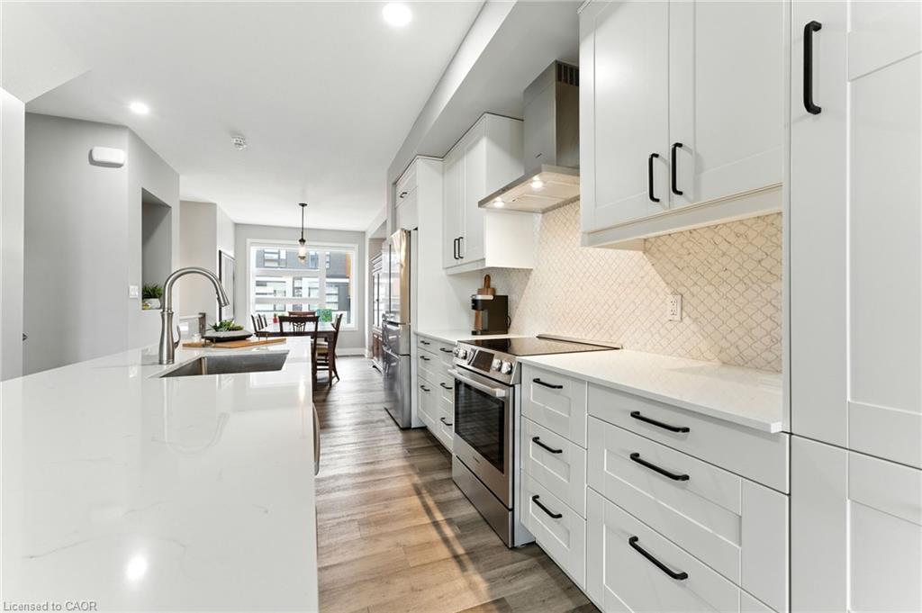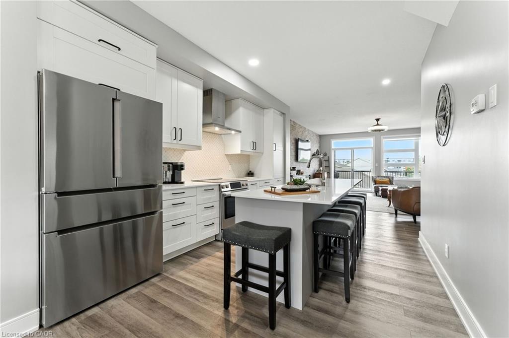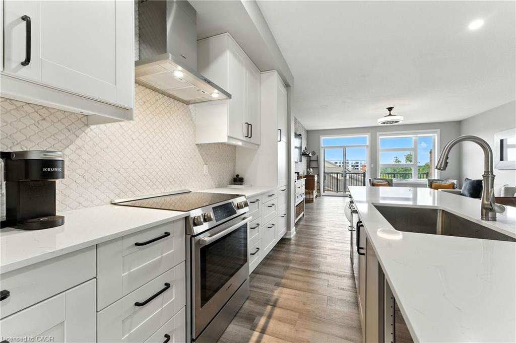 Welcome to one of Guelph’s most desirable south-end communities, where modern design meets natural beauty. Tucked away in a private, well-kept complex, this stunning 3-storey condo townhome offers a perfect blend of luxury and lifestyle—without the hassle of exterior maintenance or upkeep. Step inside to discover warm maple hardwood floors and elegant glass railings that create a bright, open feel throughout. The heart of the home is a chef-inspired kitchen, complete with an extended quartz island, new premium Bosch appliances, and a stylish complimenting backsplash—ideal for both everyday living and entertaining. From the balcony, soak in breathtaking sunset views surrounded by lush greenery, a backdrop that brings a sense of calm and relaxation. Upstairs, a thoughtfully designed layout pairs the convenience of dedicated laundry with 3 bedrooms that offer comfort, privacy, and functionality for the whole family. On the ground floor, a versatile fourth bedroom with a walkout-accompanied by a full bathroom provides endless options—perfect as a guest suite, home office, or private escape. Thoughtfully designed for today’s modern lifestyle, this home is a truly special offering in a location that puts you close to everything, yet feels like a retreat.