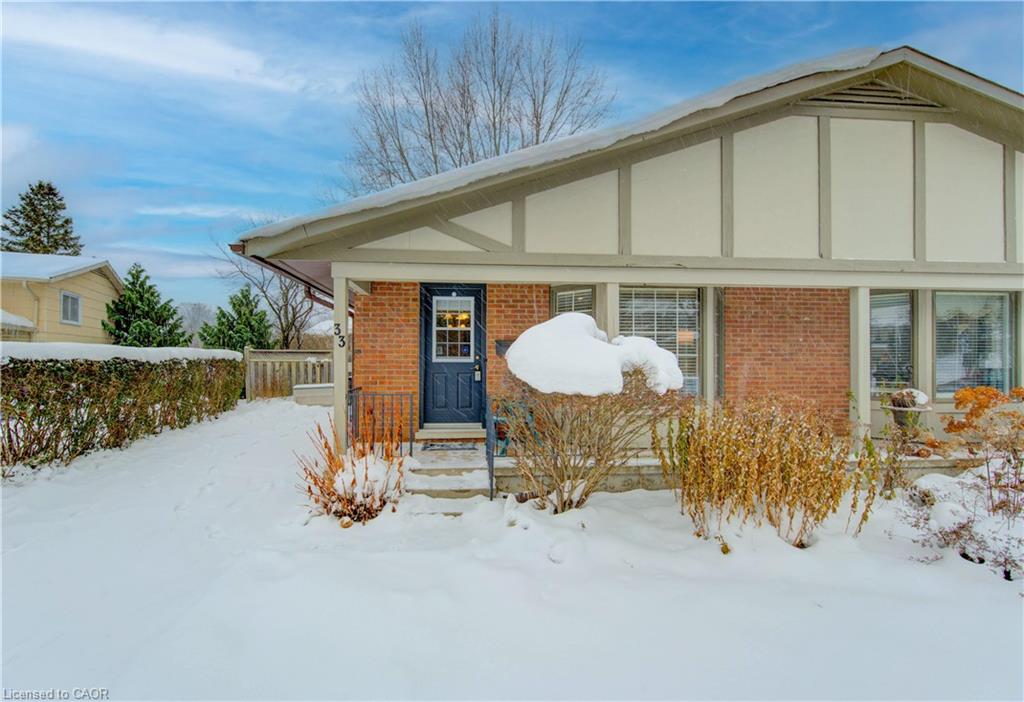 Welcome to 33 Manor Drive! This well-maintained 3-bedroom, 2-bathroom backsplit semi is located in Kitchener’s highly desirable, family-friendly Chicopee neighbourhood. Move-in ready and just minutes from major shopping centres, parks, and outdoor recreation opportunities, this home offers both comfort and convenience. The main floor features a galley style kitchen with tiled floor, breakfast area, and a convenient walkout to the 3-car driveway. The combined living/dining room provides comfortable gathering space with carpeting and a large bay window overlooking the front yard. Upstairs you will find 3 good sized bedrooms, each with its own closet, along with a full 4-piece main bathroom. The lower level features a 3-piece secondary bathroom and a bright, carpet-free family room with direct walkout access to the fully fenced backyard, complete with a patio. The basement level offers even more versatility with a finished rec room ideal for a home office, gym, or hobby space, as well as a laundry room with a workbench. Situated near Chicopee Ski Resort and Tube Park, as well as Grand River’s Canoe the Grand experience, the area delivers year-round outdoor recreation at your doorstep. With close access to the highway, this home is ideal for commuters. Appliances included: washer, dryer, dishwasher, stove, and fridge. Schedule your private showing today. Viewed by appointment only - no open houses.