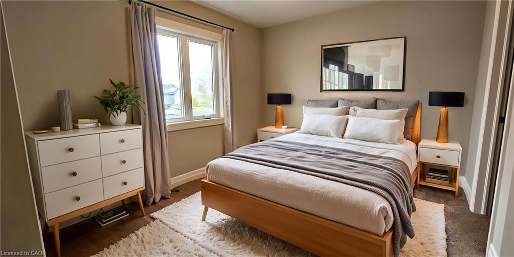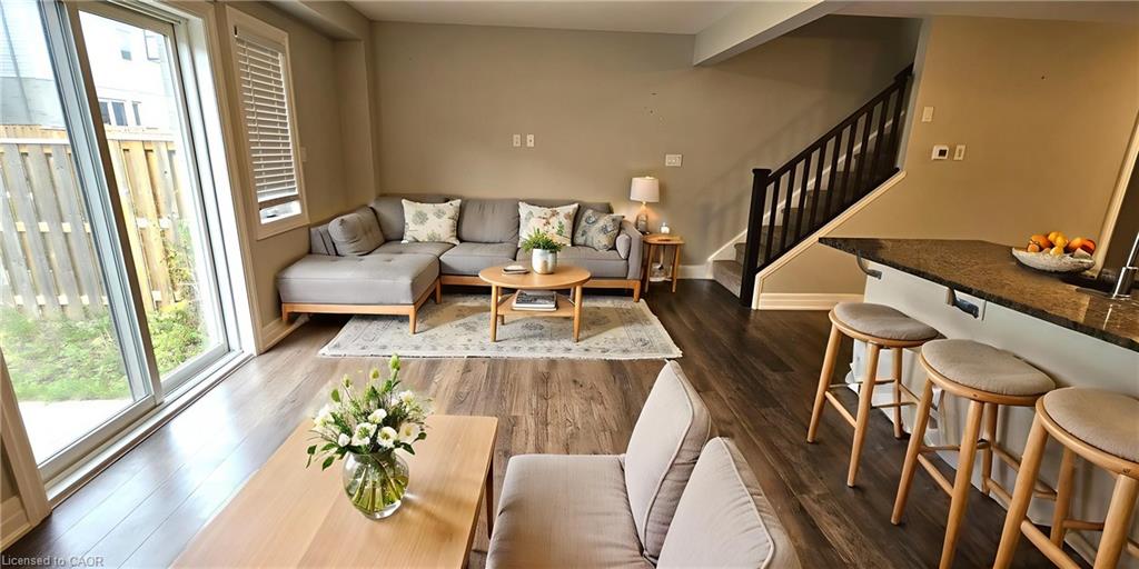 MODERN TOWNHOUSE LIVING AT 33 NIESON STREET! Step into this beautifully designed townhouse featuring contemporary finishes and an inviting open-concept layout. The carpet-free main floor boasts a bright living and dining area, with sliding patio doors leading to an outdoor space. The modern kitchen is equipped with stainless steel appliances, ample counter space, and sleek cabinetry. A convenient powder room completes the main floor. Upstairs, you’ll find 3 spacious bedrooms and 2 bathrooms, including a primary suite with a 3-piece ensuite and a walk-in closet. The upper-level laundry adds convenience to your daily routine. Additional features include a single garage, driveway parking for two, AND an finished basement rec room. Ideally located close to schools, parks, shopping, and just minutes from the highway. Tenant(s) are responsible for heat, hydro, gas, water, tenant insurance, and hot water heater rental. Available immediately. Virtually staged.