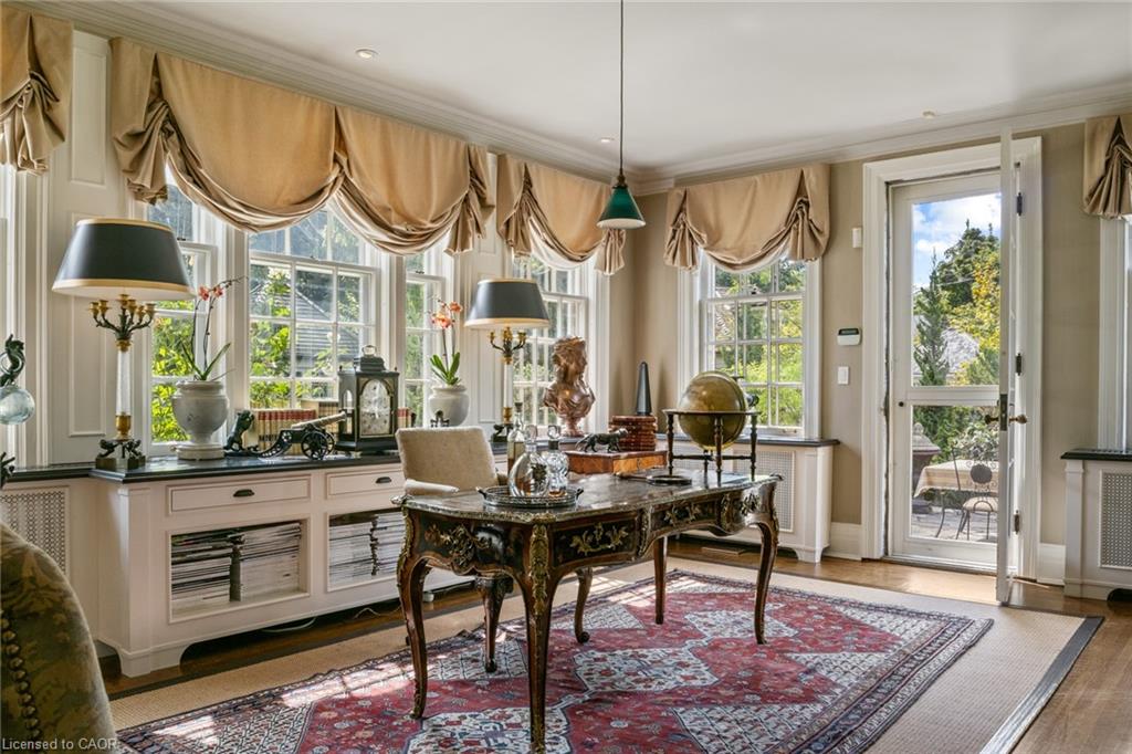 Welcome to 33 Salisbury Avenue, a rare opportunity to own one of the most elegant and sought after homes in the Dickson Hill area of West Galt. This Georgian classic, built in 1928, has been lovingly cared for by the same family for the past 25 years and features interiors designed by Brian Gluckstein. With timeless architecture and modern conveniences, this residence captures the feeling of Gold Coast Long Island meets Newport Rhode Island. The home stands proudly at the corner of Salisbury and Byng Avenue, framed by formal gardens and mature landscaping. Equipped with smart home technology, the property offers ease of living with modern controls at your fingertips. Inside, the main level features soaring ceilings, rich hardwood flooring, and expansive principal rooms filled with natural light. The kitchen is the centerpiece, offering premium appliances, custom cabinetry, and seamless flow to both casual and formal spaces. A charming breakfast room, butlers pantry, and hidden passage to the dining room add to its appeal. The second and third floors offer an array of spacious bedrooms, including a luxurious primary suite with a spa inspired marble ensuite and custom art tapestry surrounding the freestanding tub. Additional bedrooms each feature their own ensuite, providing comfort and privacy for family or guests. Set on just over half an acre, the private backyard is a true retreat. Enjoy the in ground pool, covered side porch, formal gardens, or stroll to the private laneway that leads to a detached two car garage. Whether relaxing quietly or hosting gatherings, this outdoor space is designed for both. This is a once in a lifetime chance to own a piece of Cambridge history in the prestigious Dickson Hill community.