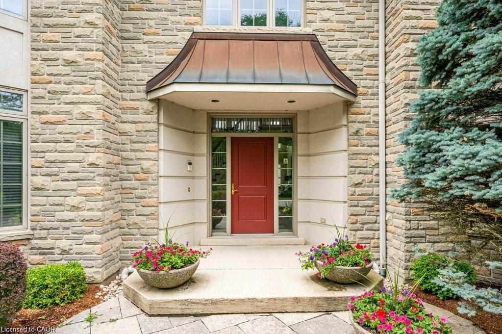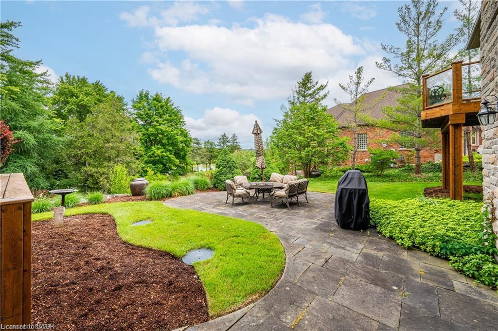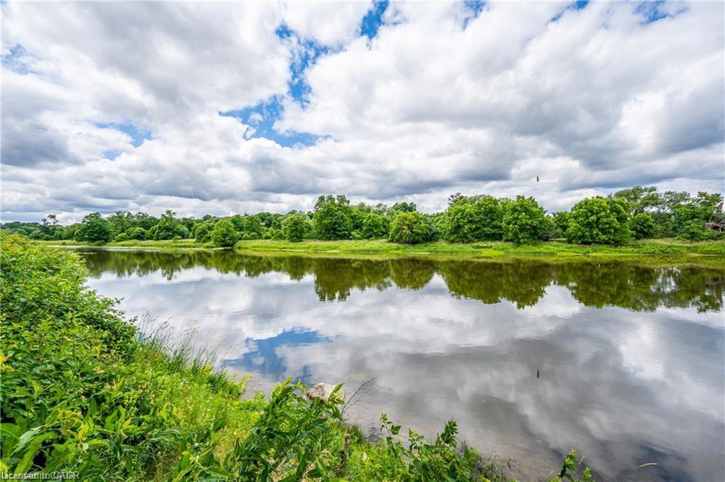 Discover refined living in the prestigious River Oak Estates—where timeless design meets an extraordinary natural backdrop. Set on a lush half-acre lot backing directly onto the Grand River, this 6,000+ sq. ft. residence captures breathtaking views of the water, pond, and Grand River Trail. Thoughtful landscaping enhances its privacy and curb appeal, creating a truly peaceful setting. Inside, sophistication unfolds across three levels, with 5+2 bedrooms and 6 bathrooms offering comfort and flexibility for family and guests. The grand foyer opens to an elegant staircase and sun-filled formal living and dining rooms—ideal for entertaining large gatherings. The kitchen, complete with an oversized island and casual dining space, extends to a spacious deck overlooking the river. A stone wood-burning fireplace anchors the family room, where floor-to-ceiling windows frame the scenic outdoors. The main floor suite is a private retreat featuring a gas fireplace, walk-in closet, and balcony access. Its luxurious ensuite includes dual vanities, a soaker tub surrounded by windows, and a glass walk-in shower. Upstairs, you’ll find four additional bedrooms, a home office with custom built-ins, and a dedicated media room. The lower level offers two more bedrooms, a 3-piece bath, wet bar, games area, and walkout access to a stone patio and landscaped gardens—perfect for indoor-outdoor living. Blending comfort, elegance, and a rare connection to nature, this River Oak Estates home delivers a lifestyle as remarkable as its setting.
