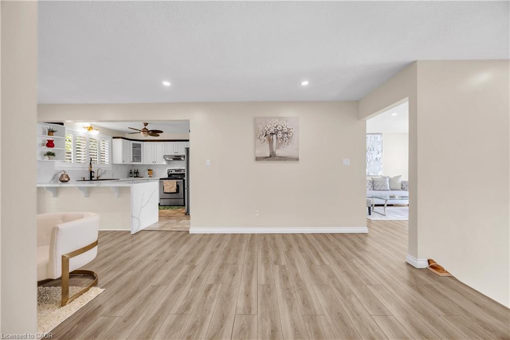 Welcome to 34 Georgina Crescent, Kitchener: a beautifully maintained legal duplex raised bungalow located in the highly sought-after Lackner Woods neighbourhood. This home is Nestled on a quiet court, featuring charming curb appeal with a manicured front yard and a brick exterior. With parking for up to 5 vehicles (1.5 garage + 4 driveway), it’s ideal for families or multi-generational living. Step inside and you’ll immediately notice the bright, open-concept layout and carpet-free design. Renovated in 2021, the main floor boasts modern finishes, including upgraded flooring. The kitchen is equipped with stainless steel appliances, quartz countertops, sleek cabinetry and plenty of storage. Just off the kitchen, the dining area is the perfect spot for family meals and lasting memories, while the spacious living room offers an airy, sun-filled atmosphere, ideal for hosting game nights, movie marathons, or cozy gatherings. The main level also includes 3 generously sized bedrooms, each with ample closet space and a stylish 4pc bathroom featuring a glass tub enclosure. Convenience is key with laundry located right beside the bathroom. The lower level is a fully finished legal basement apartment. It includes 2 spacious bedrooms, a modern 3pc bathroom, its own kitchen with all appliances, dining area and a large recreation room with an additional den space. With separate laundry, Separate Electrical panels and its own walk-in access directly from the driveway, this suite functions as a completely independent living space. Outside, the property continues to impress with a fully fenced, oversized backyard with an expansive deck, provides endless possibilities. The location is truly unbeatable, this home is within walking distance to top-rated schools, trails, Parks, shopping, restaurants and quick highway access. This property is perfect for families, investors or those seeking a multi-generational living. Don’t miss your chance to own this gem, Book your showing Today!