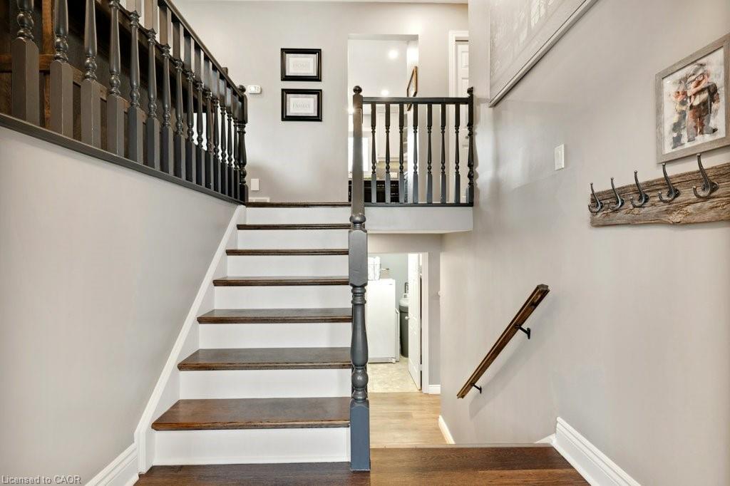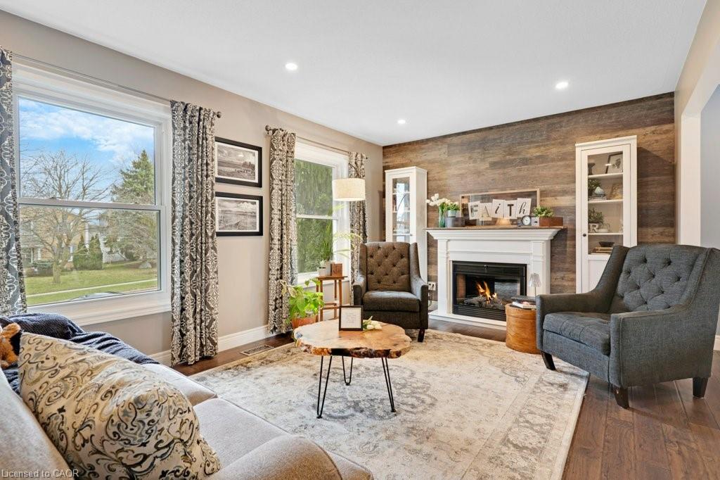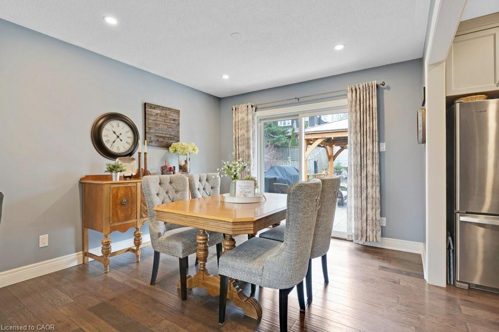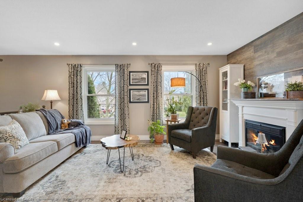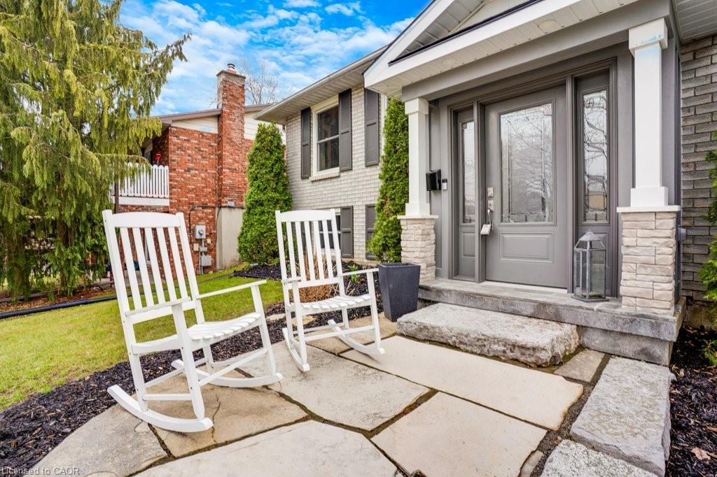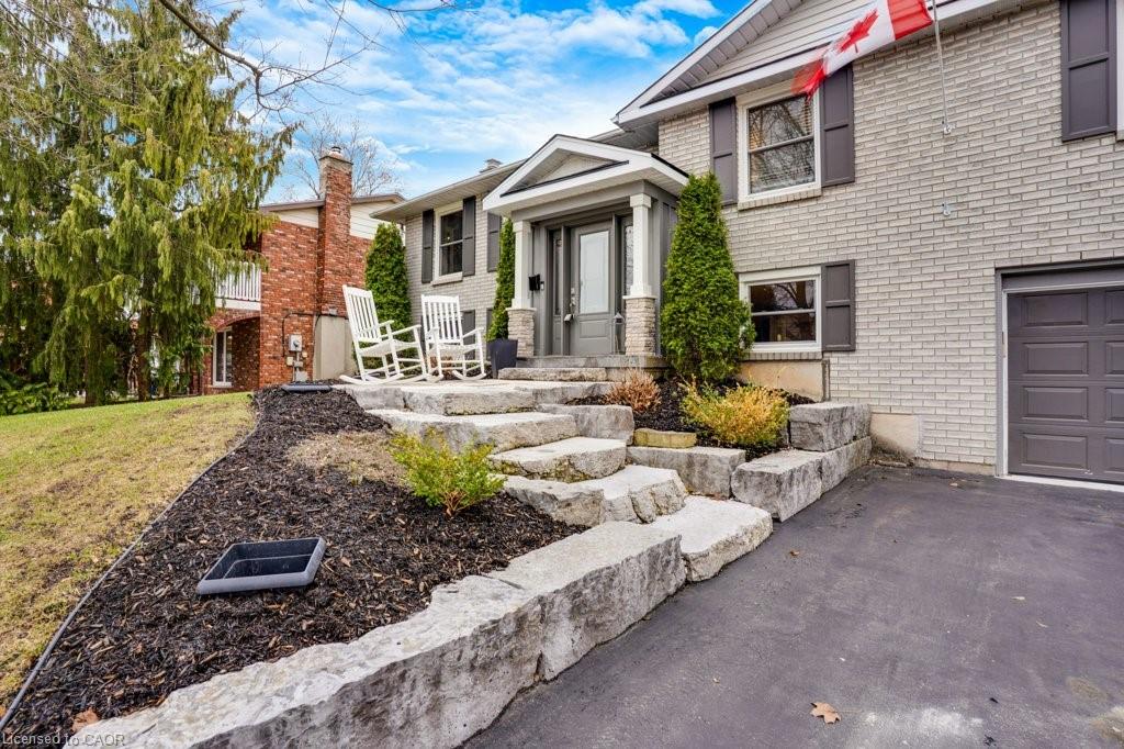This exquisite West Galt raised bungalow is available right in time for back yard summer enjoyment! This large fenced yard has been lovingly cared for and designed. An amazing perennial garden is displayed on the slope with a babbling waterfall installed in '24. The sprawling deck, wooden gazebo and landscaping was all completed in '21. In the front yard, all landscaping, arbour stone, the paved double-wide driveway, and the front entrance addition were completed in '21. Inside is a spacious front entrance leading to the living room, dining room and kitchen area. The living room includes an electric f/p and two sunny windows. The dining room offers a new patio door '17 leading to the deck. The kitchen was renovated in '17 and includes a centre island, quartz counter tops, two display cabinets with glass doors, under cabinet lighting and stainless steel appliances. Three bedrooms and a 4pc bath complete this level. The primary bedroom features an ensuite privilege and a step-in closet with organizers. All pot lighting and engineered flooring throughout the main level were completed in '17. The lower level includes an L-shaped family room renovated in '18 with luxury vinyl flooring and two large sunny windows, ready for all your family movie nights, and includes plumbing behind one wall for a future kitchen area if interested. A sunny bedroom with a large egress window and closet is perfect for teens or overnight guests. Adjacent is a 3pc bath with walk-in glass shower. The laundry room is bright and functional and renovated in '18. Other recent updates include the roof shingles '18. C/vac and accessories and the murphy bed are included. Hot tub is excluded. Don't miss out! This home has been impeccably kept and is only steps to St. Augustine School. Five minutes of countryside driving to the 401.