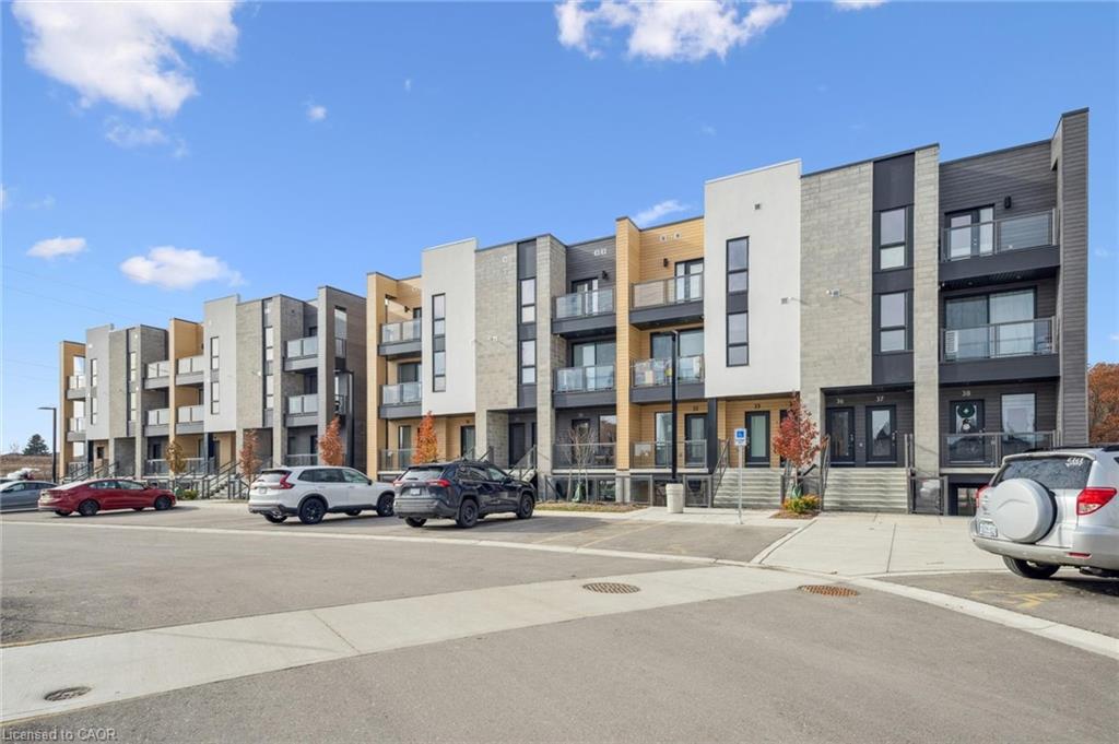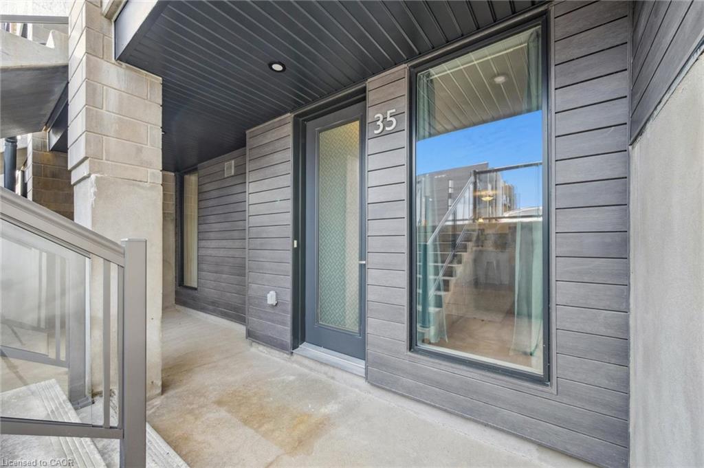 Welcome to 261 Woodbine Avenue, Unit 35, a modern and stylish 3-bedroom, 2-bathroom stacked townhouse condo offering the perfect blend of comfort, convenience, and natural surroundings. Step inside to an open-concept living space enhanced by high ceilings and large windows that flood the home with beautiful natural light. The heart of the home is the contemporary kitchen, featuring stone countertops, a gorgeous herringbone tile backsplash, stainless steel appliances, and a large island, perfect for morning coffee, family meals, or entertaining guests. If the kitchen is the heart of this home, the soul is the private back deck overlooking a serene forest. This deck can be accessed from a walkout in the primary bedroom and one of the secondary bedrooms. Imagine waking up to peaceful treetop views every day and enjoying access to the walking trail that runs behind the property. It’s a rare opportunity to enjoy nature without compromising urban conveniences. This vibrant and growing neighbourhood offers every amenity you need. Shopping, dining, parks, transit and will soon be home to the Cowan Recreation Centre, set to become Kitchener’s largest community hub. Families will appreciate the proximity to excellent schools, making daily routines easier and more connected. With exceptional views, modern finishes, and a layout designed for comfort and style, Unit 35 at 261 Woodbine Avenue delivers the best of both city living and quiet green space.