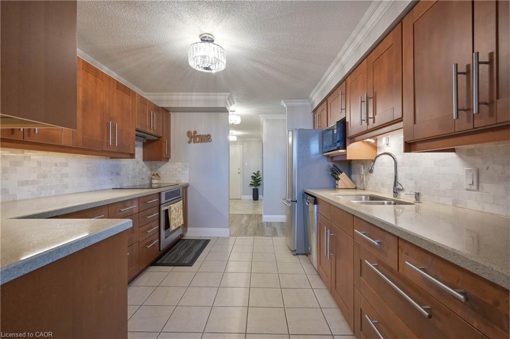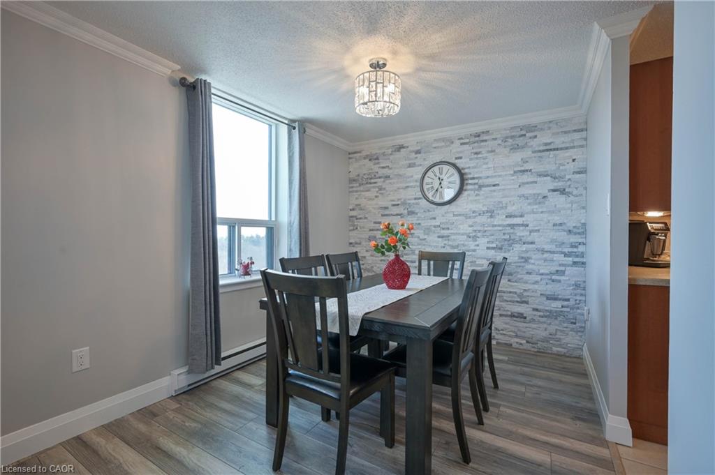Welcome to GREEN VALLEY PLACE! This bright, cozy and Spacious 2 Bedroom & 2 Bathroom unit boasting over 1,000 Sq Ft and a very practical layout has had many upgrades done within the last few years(Windows 2025, Siding 2025, Floor 2019, Hot water heater 2024, Appliances 2019). It is in move-in ready condition, allowing you to settle in immediately and enjoy the panoramic views of the beautiful greenbelt behind the building. This unit has been very well maintained giving you peace of mind for years to come. The kitchen/dining area boasts plenty of kitchen cabinets with granite countertops, newer appliances, while in the dinette area you can easily fit a large dinner table for family dinners. The bedrooms are generously sized while the master bedroom is equipped with an ensuite for your convenience. The main 4-piece washroom has been updated as well as the laundry area. The in-unit laundry is super convenient and equipped with a newer Washer & Dryer. A modern Wall-Air Conditioning unit is also included. Extra building amenities include: Exercise room, party/games room and sauna. Excellent location close to all amenities, schools, parks, walking trails, transit, banks, grocery stores, Conestoga College and fast access to Highway 401. Perfect for a first time home buyer, someone downsizing or an investor.