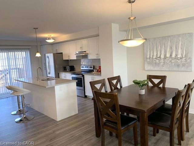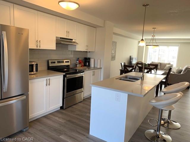 Welcome to 35 Sportsman Hill, Kitchener – a modern townhouse in one of Kitchener’s most desirable neighbourhoods! This only-a-few-years-old 3-bedroom, 3-bathroom townhouse offers contemporary living with plenty of space and comfort for families or professionals. Thoughtfully designed with an additional office that can easily be used as a 4th bedroom, this home provides flexibility to suit your lifestyle needs. The heart of the home is its bright and open-concept second floor, featuring a stylish kitchen with granite countertops, modern cabinetry, and all new stainless steel appliances. The adjoining dining and living areas create the perfect setting for entertaining or enjoying quality family time. You’ll find modern laminate flooring and ceramic tiles throughout the home, with carpet only on the stairs, making maintenance simple and convenient. The spacious primary suite offers a private retreat with a 3-piece ensuite, step-in shower, and a generous walk-in closet. Two additional bedrooms, along with a full bathroom, provide ample space for the rest of the household. Additional highlights include: In-suite laundry for added convenience, Single-car garage plus private driveway parking. Location is everything, and this home is commuter-friendly with easy access to Highway 401, while also being close to top-rated schools, parks, shopping, and public transit. This spacious and stylish townhouse is the perfect blend of modern finishes and practical features, making it an ideal rental for families, young professionals, or anyone seeking comfort and convenience in a fantastic Kitchener neighbourhood. Book your private showing today.