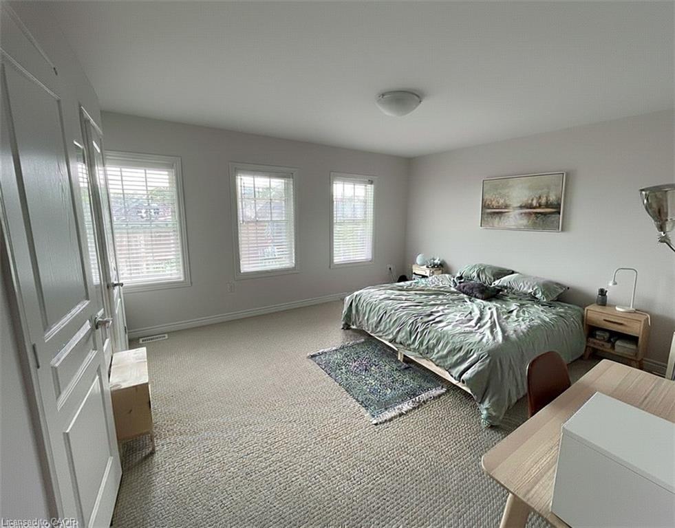 Modern 3-Storey Townhouse Near Downtown Kitchener. Stylish and spacious 3-bedroom, 2.5-bathroom townhouse with an attached garage, ideally located within walking distance to Downtown Kitchener, the GO Station, and Grand River Hospital. This bright, open-concept home features high-end finishes throughout, including hardwood floors in the main living areas, carpeted bedrooms and stairs, and ceramic tile in the bathrooms. The gorgeous kitchen offers ample counter space, granite countertops, stainless steel appliances, and walkout access to a private patio—perfect for relaxing or entertaining (BBQ permitted). Upstairs, the third floor boasts a primary bedroom with his-and-hers closets and a 3 piece ensuite, plus two additional bedrooms, a 4-piece main bath, and in-suite stacked washer and dryer for added convenience. Additional features include air conditioning and professional painting and cleaning prior to move-in, ensuring the home is in pristine condition. Tenants enjoy the excellent downtown Kitchener location: on bus route, 10 min walk to LRT, 5 min drive or 15-20min walk to downtown Kitchener amenities such as great restaurants and entertainment, Kitchener Farmers Market; 3min drive or 15min walk to GO station; 10min drive to UW