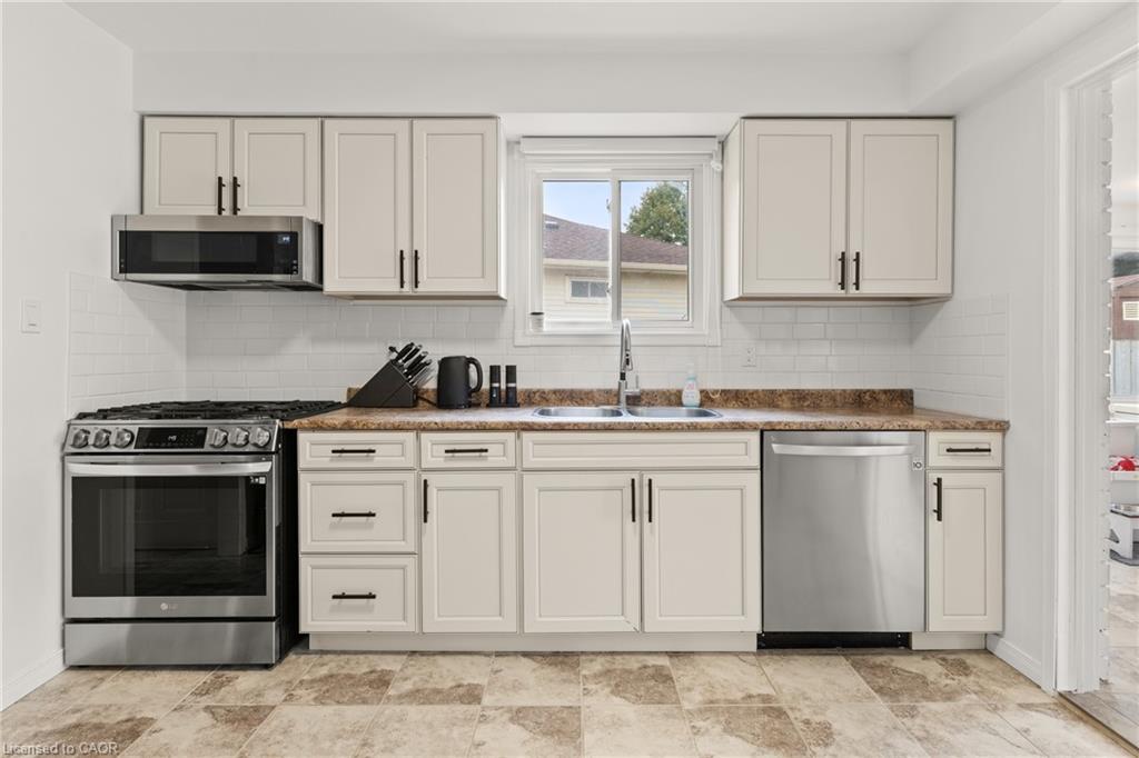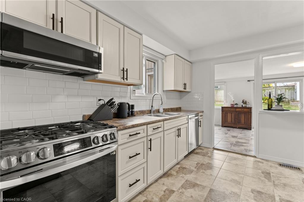 Welcome to 36 Angela Crescent, Cambridge! Tucked away on a quiet mini cul-de-sac in desirable West Galt, this charming home offers peace and privacy with very little traffic. Thoughtfully updated over the past five years, it features mostly newer windows, roof (2018), furnace (2018), replaced kitchen and bathrooms, updated flooring, new deck, modern light fixtures, fresh paint, and newer appliances. This home was the original model home and the 1 car garage was used as their sales office which has now been converted to the 4th bedroom which could easily be converted back to the garage. The finished basement provides additional living space, perfect for family, hobbies, or guests which also includes the laundry room and added storage. Enjoy the convenience of parking for four cars, a welcoming front deck ideal for morning coffee or evening drinks, and a prime location close to schools, parks, and scenic trails. Local shopping is just 3 minutes away, and downtown Galt is a quick 5-minute drive. This home truly combines comfort, updates, and an excellent location.