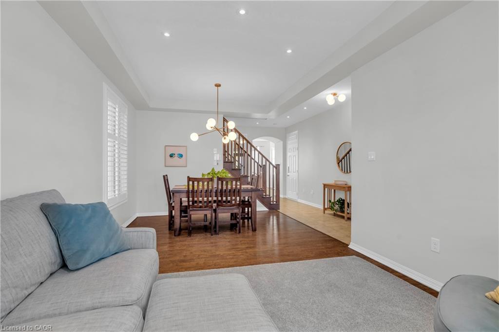 ABSOLUTELY STUNNING!!!!! Truly One Of A Kind in Mattamy's High Demand Millpond Community on a Lovely Street Overlooking the Farmlands. Loaded with Numerous Updates!!! Popular " Greenway" Model Just Under 2300 Sq. Ft . + 997 sQ fT Fully Finished Gorgeous Basement. Main Floor Features 9' Ceiling, Upgraded Flooring Thru-out . Open Concept Living & Dining room With Bay Window. Upgraded Kitchen With large Centre Island, Pots & Pan Drawers. Custom Back splash, Huge Family Room. POT LIGHTS GALORE!!! CALIFORNIA SHUTTERS. Painted in Clear Neutral Tonnes. Hardwood Staircase With Plush Runner. Computer Loft on 2nd Floor, Custom Size Huge Master Bedroom With W/I Closet & a 5 Pce En-suite Featuring A Stand Up Shower & A Large Soaker Tub. 2nd Bedroom With a Walk In Closet & Cathedral Ceilings. 2 Other Good Sized Rooms. Hardwood Staircase Leads to A Fully Finished Gorgeous Basement. With a Full Oversize Bedroom & A Full Washroom. Huge Rec. Room + games Rm/ gym setup. POT LIGHTS!! Lush Green Front & Backyard Lawns. NIce Newer Deck. PARKING FOR 4 CARS ON THE DRIVEWAY & A DOUBLE CAR GARAGE. No Rental Contracts. Upgraded Closet Organizers inside Every BEdroom Closet. Close To 3 Parks, Hwy 401 ,Transit, Schools, Shopping & the Thriving yet Quaint Downtown Hespeler on The River.