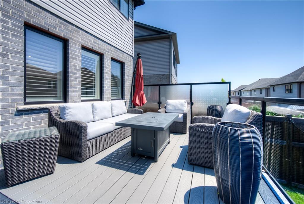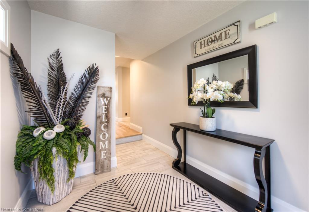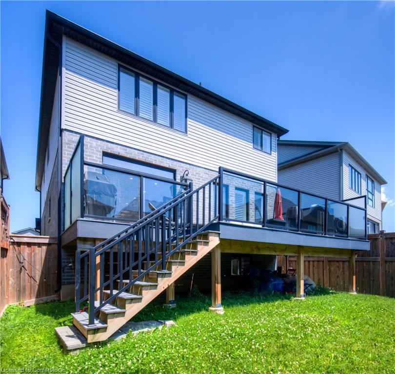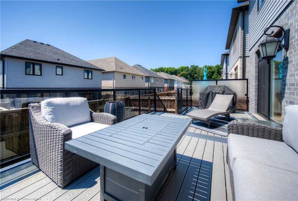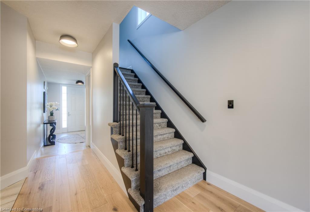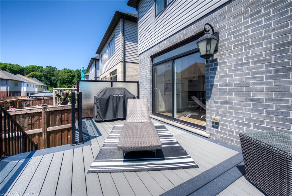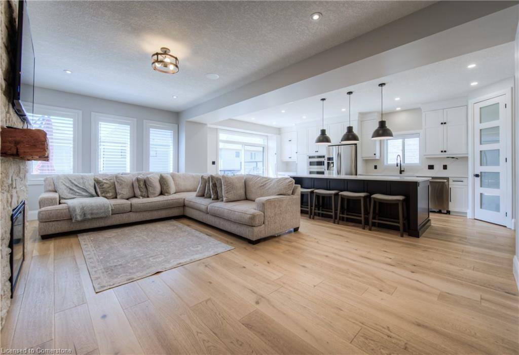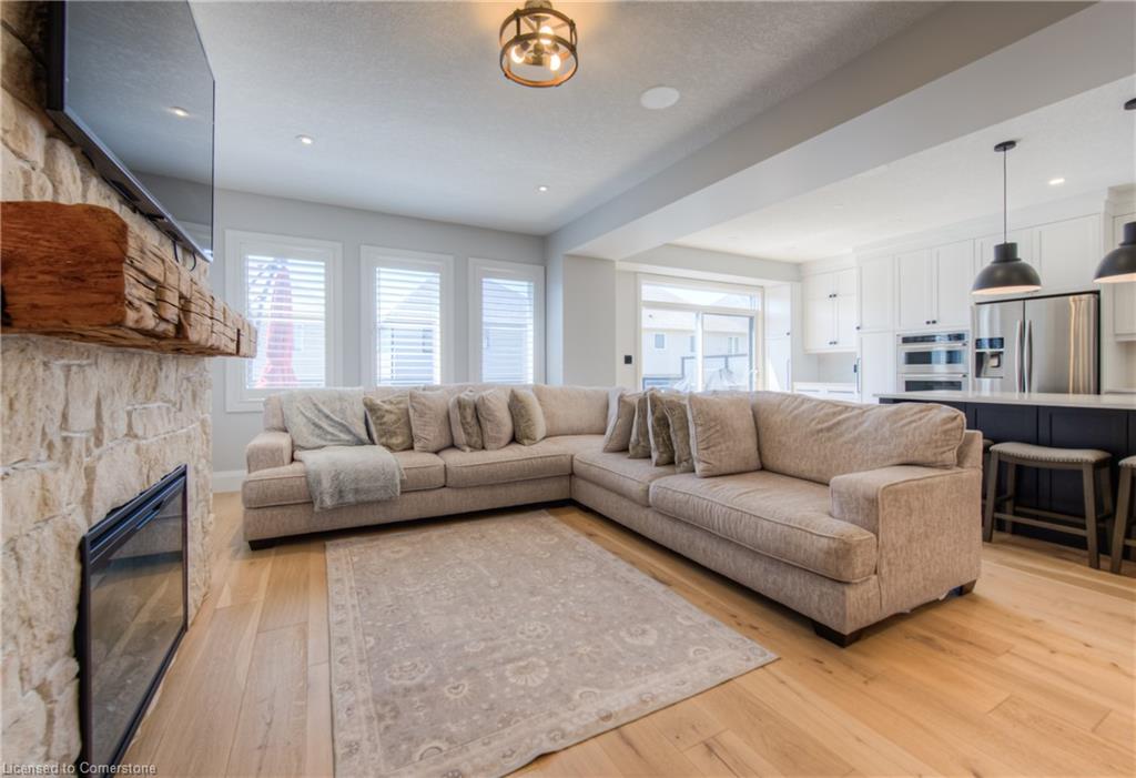 MODERN FAMILY LIVING STEPS TO THE 401. Nestled in one of Kitchener's most sought-after communities, this beautifully upgraded 4-bedroom, 3-bathroom home offers over 2,500 sq ft of thoughtful living space designed with today’s families in mind. Located just 3 minutes to the 401 and close to parks, top-rated schools, trails, and every convenience imaginable. From the moment you arrive, you’ll be impressed by the home’s modern curb appeal, oversized concrete driveway, and double-car garage. Step inside to an inviting open-concept main floor, freshly renovated in 2024, where sleek finishes and timeless design flow seamlessly. The heart of the home is the chef-inspired kitchen, boasting white shaker cabinetry with contrasting black hardware, quartz countertops, a walk-in pantry, and an oversized island perfect for hosting or daily family life. The living room offers a cozy retreat, highlighted by a stunning stone fireplace with rustic wood mantle, wide plank hardwood floors, and expansive windows that fill the space with natural light. Walk out to the private upper deck, ideal for morning coffee, evening entertaining, or relaxing in the sunshine. Upstairs, you’ll find all 4 bedrooms along with an additional upper family room—a flexible space perfect as a media room, kids' play area, or quiet reading nook. The primary suite is a true retreat featuring a large walk-in closet and a spa-like ensuite with dual sinks, soaker tub, and a glass-enclosed tiled shower. A second shared full bathroom with double vanity completes the upper level. The unspoiled basement offers endless possibilities to finish to your taste—whether that’s a home gym, office, or additional living space. This home has it all — modern finishes, an incredible layout, and an unbeatable location just steps to beautiful trails, perfect for walking, biking, or exploring nature.