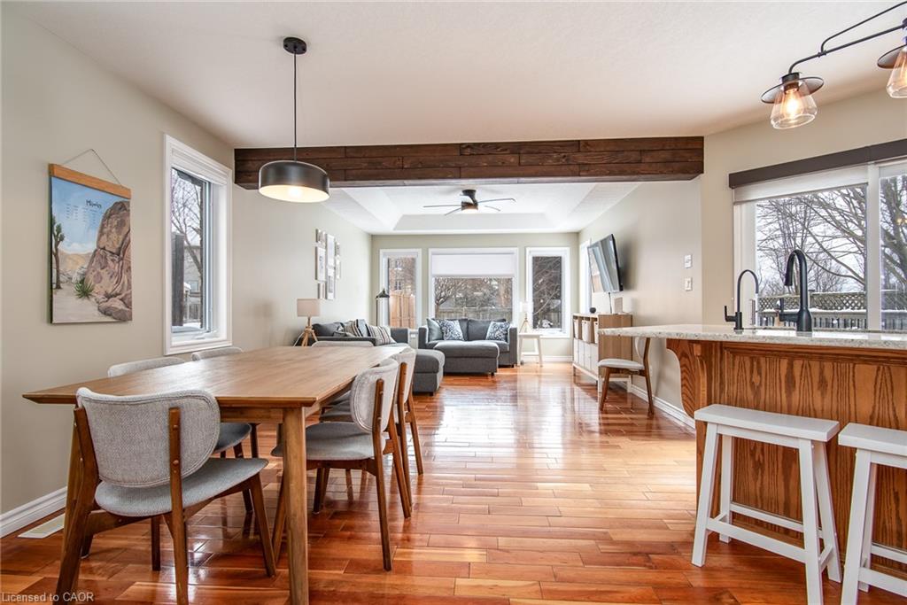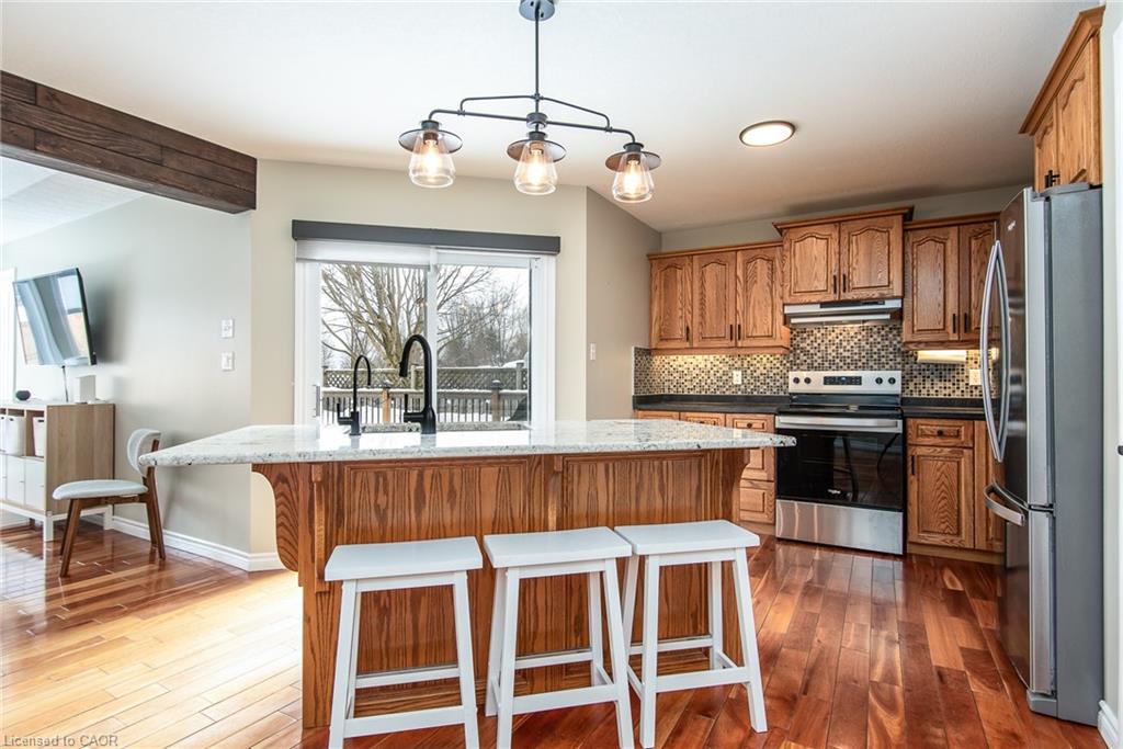 Welcome to 37 Duke Street in Elmira, a beautifully maintained family home offering over 2,500 sq ft of finished living space with 3 bedrooms and 3 bathrooms in a desirable, family-friendly neighbourhood. This move-in-ready home features a bright and welcoming main floor, stylish new flooring throughout the upper level, stairs and basement, and a finished lower level complete with a full bathroom - perfect for a rec room, home office, or guest space. The layout offers both comfortable everyday living and functional space for a growing family. Step outside to enjoy the large, fully fenced backyard with no direct rear neighbours, creating a private setting for relaxing or entertaining. A single car garage and driveway parking for three vehicles add everyday convenience. Updates include luxury laminate flooring (2025), roof (2018), furnace (2019), sump pump (2019), basement bathroom (2021), updated appliances, deck (2023) and new owned water softener and hot water heater. Located close to schools, parks, recreation facilities, and Elmira’s vibrant downtown, this home offers the perfect blend of small-town charm and modern comfort, with easy access to Waterloo and Kitchener. A wonderful opportunity to settle into a welcoming community and a home that’s ready to enjoy.