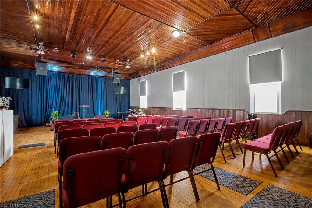 Additional features include fellowship or meeting rooms, office space, washrooms, and ample on-site parking. The layout supports a wide range of uses such as community programming, arts and cultural space, education, wellness, or residential conversion possibilities.