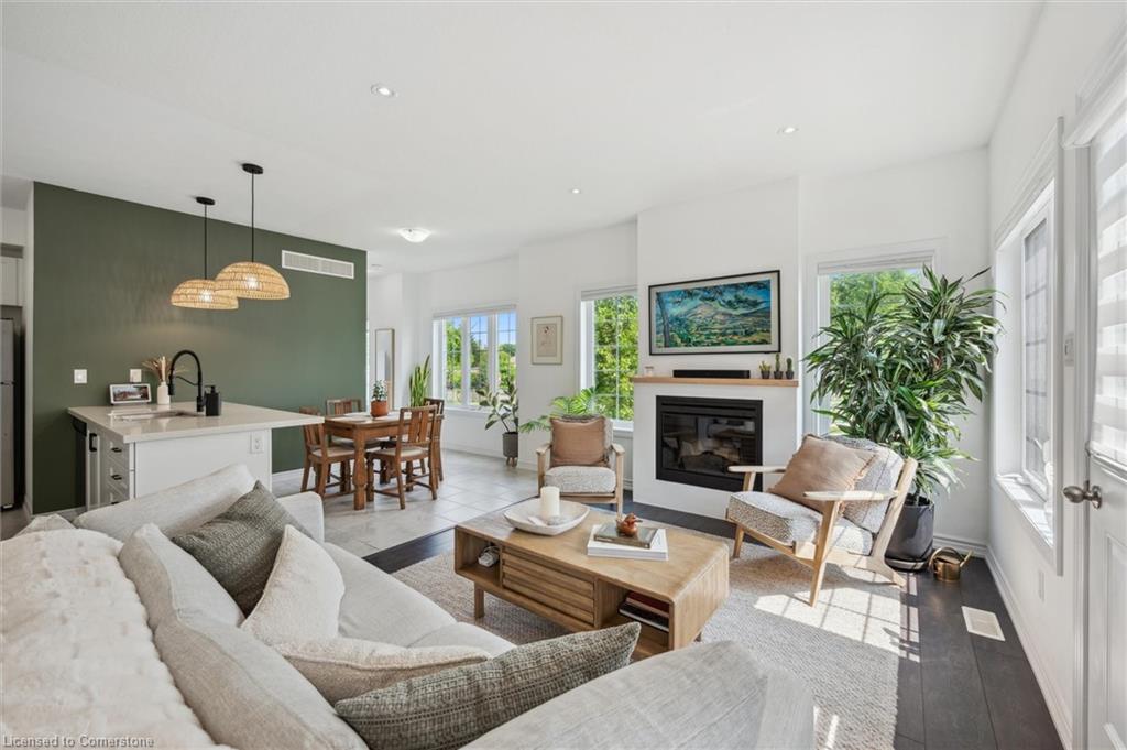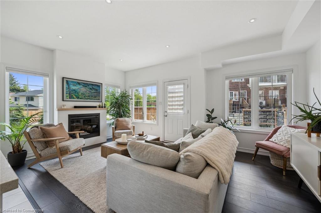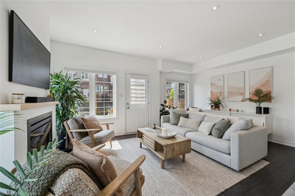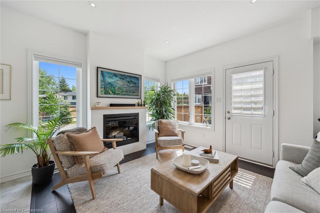 Stylish, modern and bright! This beautiful light filled end unit condo townhouse with a wall of extra windows embodies low maintenance yet stylish living! Open concept main floor with beautifully appointed kitchen and plenty of counterspace , storage and a dining area for entertaining friends and family! The bright living room with built in electric fireplace is perfect for cozy movie nights. The upgraded patio area with planter boxes and privacy screens is the ideal place to spend summer afternoons. The lower level has the primary with walk in closet, a second bedroom or office, storage, laundry and a full bath. The owned parking space is conveniently located behind the unit, just a few steps away! Located in a prime neighbourhood this townhome is close to The Boardwalk, shopping, transit and walking trails.