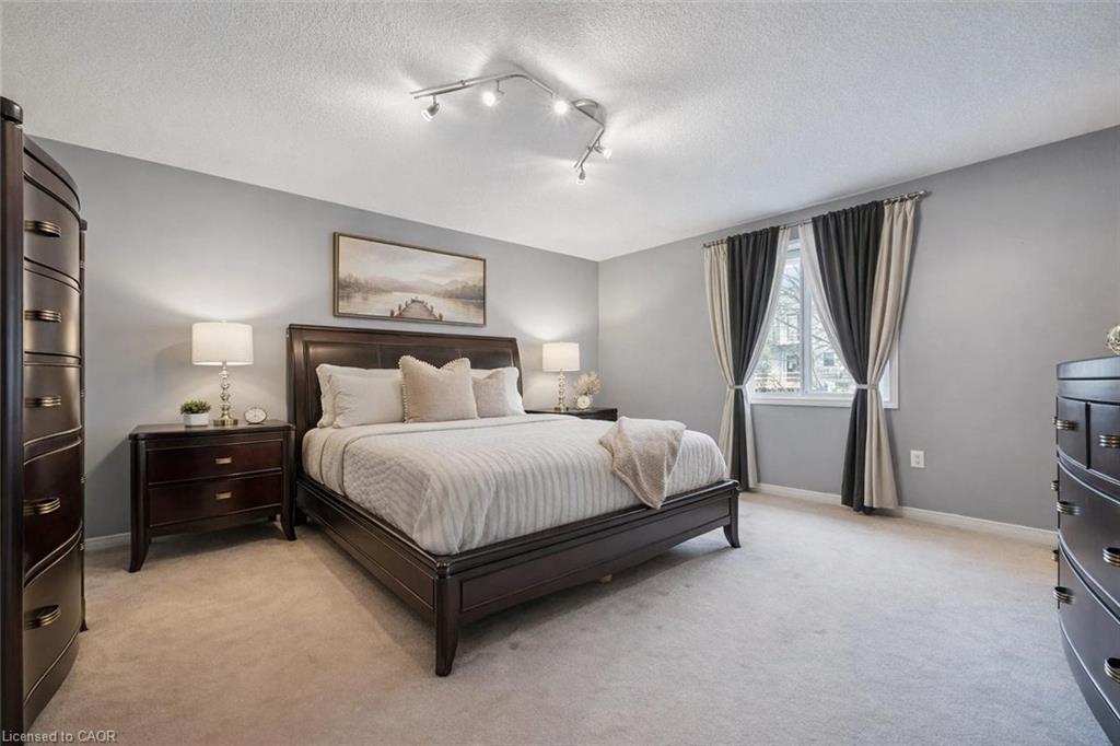 38-210 Dawn Ave is a beautifully maintained 3-bdrm, 2.5-bathroom townhouse W/finished basement, located in a sought-after south-end complex W/easy access to everyday amenities, the University of Guelph & Hwy 401! Step inside to bright open-concept main floor designed for everyday living & entertaining. Spacious kitchen features stylish tiled backsplash, ample counter space & large centre island W/bar seating—perfect for casual meals or hosting friends. It flows seamlessly into dining area & bright living room, where a large window & sliding doors fill the space W/natural light. Convenient 2pc bath completes this level. Upstairs the generous primary bdrm offers a large window, W/I closet & ensuite with shower/tub combo. 2 add'l spacious bdrms provide lots of closet space, complemented by a well-appointed 4pc bathroom W/oversized vanity. 2nd-floor laundry makes daily routines that much easier. Finished basement adds valuable additional living space with 2 egress windows & pot lighting, creating a bright & inviting environment. Whether you’re looking for a rec room, gym, hobby space or guest suite this level offers incredible flexibility. There is a bathroom rough-in and for investors, the potential to convert this space into a 4th bdrm for added rental income. Step outside to enjoy the private back deck complete with tall wood side fencing for added privacy, perfect for BBQs or relaxing with family & friends. Short walk to Pergola Commons where you’ll have access to groceries, restaurants, fitness centres, LCBO & more. Nature lovers will appreciate the nearby walking trails & easy access to Preservation Park, offering scenic forest paths & peaceful green space. With multiple parks, highly rated schools & bus stop just seconds away with direct access to UofG, this is an ideal location for families, professionals & students alike. Whether you’re looking for a stylish family home or a smart investment in a high-demand area, this is an opportunity you won’t want to miss