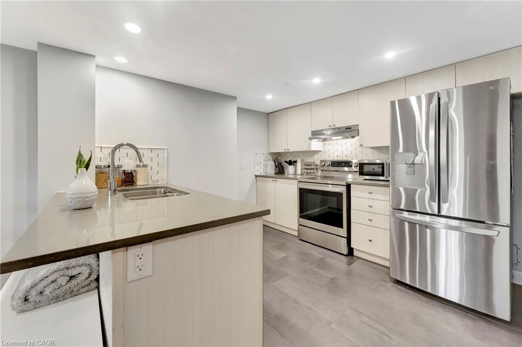 Discover the perfect blend of modern living and convenient location in this stunning stacked townhouse, featuring not one, but TWO OWNED PARKING SPOTS. As you enter the home, you're greeted by a bright and welcoming open-concept main floor that seamlessly integrates the living, dining, and kitchen areas. This thoughtful design creates an inviting atmosphere, perfect for entertaining friends and family or enjoying quiet evenings at home. Upstairs, you'll find two generously sized bedrooms, each designed for comfort and tranquility. The primary bedroom features a private ensuite, while the second bedroom has quick access to another full bath, ensuring convenience for everyone. Additionally, a well-placed powder room on the main floor adds to the practicality of this layout. This charming stacked townhouse is the ideal choice for first time buyers, small families, or anyone looking to downsize without sacrificing quality or convenience. Located in the heart of Hespeler, this townhouse provides an unbeatable combination of accessibility and lifestyle. Enjoy quick access to Highway 401, making your commute a breeze, while a variety of local amenities—including shopping, dining, parks, and schools—are just moments away. This home is not just a place to live, but a lifestyle to embrace. Don’t miss your chance to make this stylish and practical residence your own! Schedule a viewing today!