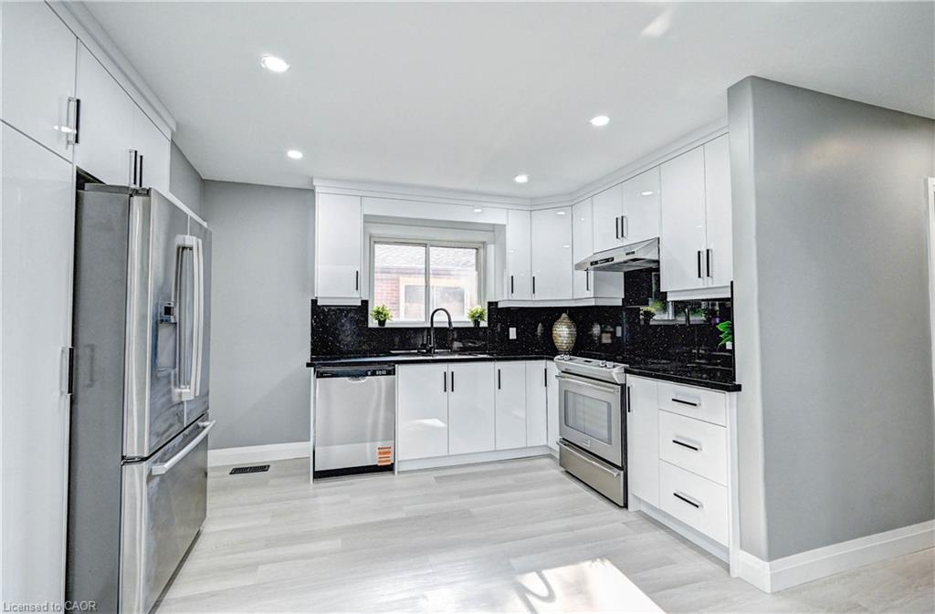 This spacious and meticulously updated brick bungalow offers 3+2 bedrooms and 2 full baths, blending classic charm with modern convenience. The brand-new kitchen boasts elegant Quartz countertops and backsplash, and all-new premium appliances, making it a chef’s delight. The fully finished basement provides versatile additional living space—ideal for a family room, home office, gym, or guest suite—and includes a second bathroom for added functionality. Outside, enjoy a private, fully fenced backyard with mature trees, a spacious deck (perfect for summer entertaining), and ample storage in the garden sheds. Extra-long driveway offer parking for up to 5 vehicles, ensuring convenience for families and guests. Nestled on a large 40’ x 110’ lot, this home is steps away from shopping, parks, top-rated schools, and amenities—combining tranquility with unbeatable accessibility. Don’t miss this rare opportunity to own a move-in-ready HOME in one of Cambridge most desirable neighborhoods!