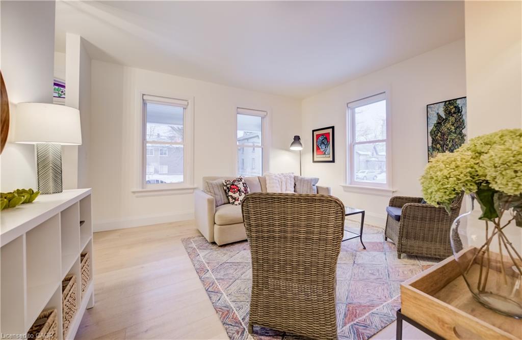 Stunning Renovated Home on Rare Double Lot in the Heart of Uptown Waterloo. This beautifully renovated 3+ bedroom, 2,788 sq. ft. (of finished living space) home is a rare find on a double lot in Uptown Waterloo. Thoughtfully redesigned in 2020, the extensive renovation and addition include updated plumbing, electrical, engineered hardwood floors, new drywall, and striking Maibec wood siding. Enjoy serene outdoor living with large covered front and back porches, an expansive stone patio, mature trees, and low-maintenance landscaping—all offering privacy and picturesque views of Uptown’s historic architecture. The fully fenced backyard features double-gated access, perfect for recreation or future expansion. Inside, the home boasts 9-foot ceilings, custom window coverings, and abundant natural light. The spacious living and family rooms offer ideal gathering spaces, highlighted by a cozy gas fireplace. The chef-inspired kitchen features a 10-foot quartz island, premium KitchenAid and Bosch appliances, and a triple-panel sliding door that opens to panoramic backyard views. Retreat to the private primary suite with elevated views of Uptown and a spa-like ensuite complete with marble floors, a free-standing soaker tub, and luxurious finishes. The finished basement (8-ft ceilings) offers versatility as a home office, recreation room, or guest suite with ample closet space, while a second basement provides extensive storage and a utility/workshop area. A 1.5-car garage and parking for up to 7 vehicles add convenience and flexibility, with access from both the front and rear of the property. Zoned R4, this property presents a unique opportunity to add up to four units or a coach house, as per City of Waterloo requirements.