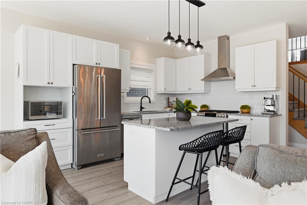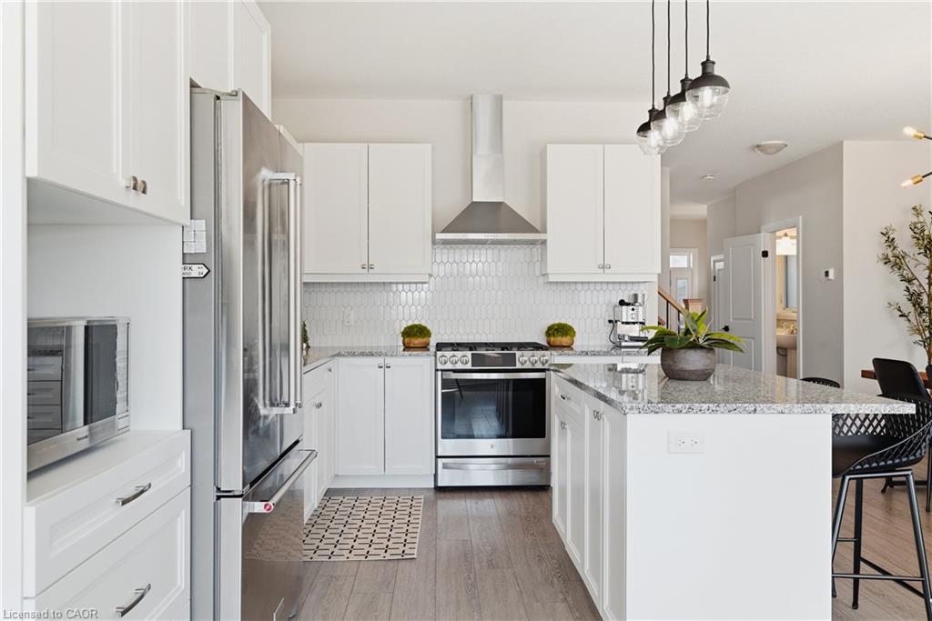 Welcome to 38 Sportsman Hill Street, a stunning detached home located in the highly sought-after Doon South neighbourhood of Kitchener, an ideal setting for families and commuters alike. Built in 2020, this beautifully maintained two-storey home offers modern finishes, thoughtful upgrades, and exceptional potential throughout. Step inside to an inviting open-concept main level featuring 9-foot ceilings and abundant natural light. The custom kitchen is a true standout, complete with granite countertops, quality cabinetry, and a functional layout that seamlessly connects to the living and dining areas, perfect for both everyday living and entertaining.