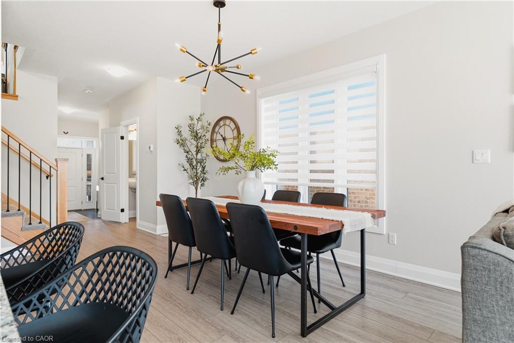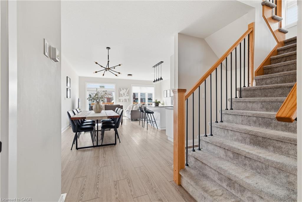 Upstairs, you’ll find three spacious bedrooms along with a versatile bonus room featuring vaulted ceilings over 9 feet and large windows, ideal as a family room, home office, or easily converted into a fourth bedroom. The primary suite offers a luxurious retreat with an upgraded ensuite, showcasing a large freestanding tub and an oversized glass shower for a spa-like experience. The unfinished walkout basement presents incredible future potential, complete with a rough-in for a full bathroom, ready for your custom vision, whether it be an in-law suite, recreation space, or additional living area. Outdoor living is just as impressive, featuring a large elevated deck (built in 2021) with stairs leading down to a fully fenced backyard (completed in 2022), perfect for relaxing, entertaining, or enjoying time with family. The extended driveway accommodates two vehicles in addition to the single-car garage. Located just minutes from Highway 401, this home provides excellent connectivity for commuters. Enjoy the convenience of being within walking distance to several parks, and close proximity to both public and Catholic schools, making it an excellent choice for growing families. A rare opportunity to own a stylish, move-in-ready home in one of Kitchener’s most desirable communities, this property truly has it all.