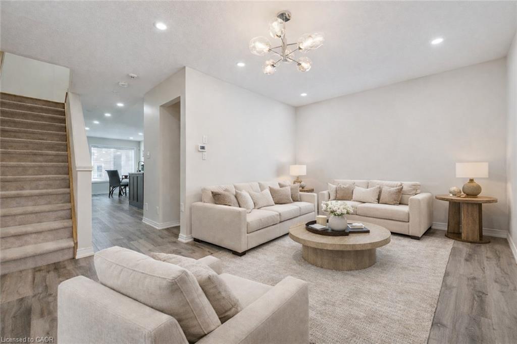 This HIGHLY SOUGHT-AFTER NEIGHBORHOOD placing you mere moments from everyday necessities, diverse shopping, esteemed schools, efficient transit, and seamless Highway 401 access. Presenting a modern three storey townhouse built in 2018, THIS HOME MASTERFULLY COMBINES CONTEMPORARY DESIGN WITH A PRACTICAL, FLOWING LAYOUT, offering both versatile living space and undeniable comfort tailored for today’s dynamic lifestyle. This residence stands out by offering the generous proportions and flexibility of four bedrooms and three full bathrooms—a rare find in townhome living. The main level introduces a versatile bedroom, perfect for hosting guests, creating a dedicated home office, or accommodating multi-generational living. An INVITING OPEN-CONCEPT DESIGN unites the living and dining areas into a natural, sun-filled hub for daily gatherings. The sleek, modern kitchen extends this sense of space, flowing effortlessly to a private balcony—your personal outdoor retreat for morning coffee, evening relaxation, or intimate entertaining. Ascend to the upper floor to discover a tranquil sanctuary comprising three additional bedrooms, including a WELL-APPOINTED PRIMARY SUITE.