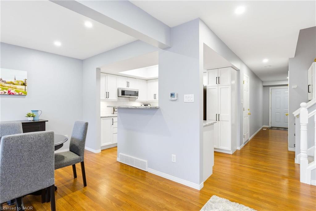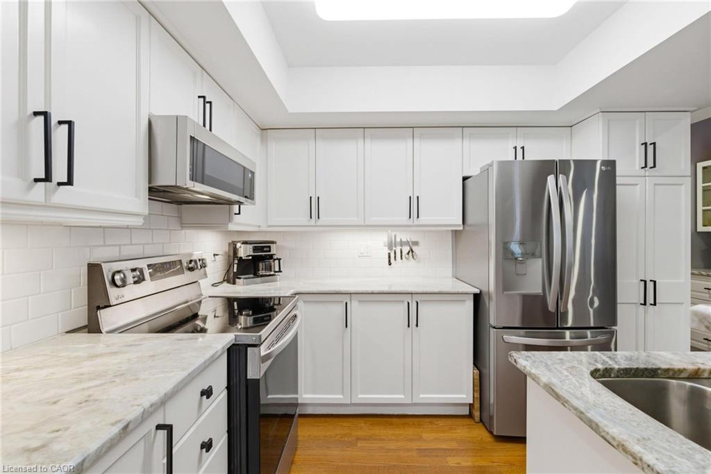 Welcome to BRIARWOOD COMMON at 30 Bryan Court in Kitchener, located in the sought-after Lackner Woods community. This spacious 1,613 sq ft home offers a bright open-concept layout with a living room, dinette, and kitchen featuring an island breakfast bar and updated granite countertops. Main floor walks out to your private fenced yard & patio complete with Gazebo. A convenient 2-piece powder room that enters off the front foyer completes the main floor. Upstairs, the impressive primary bedroom includes a walk-in closet and direct access to the main 4-piece bath, along with two additional generously sized bedrooms. The finished lower level adds valuable living space with a rec room featuring built-in cabinets, a 3-piece bath, laundry, and cold room. Additional features include a single-car garage with additional parking in the driveway. On-demand water heater & Water Softener are owned and also included are the appliances which only five years old. Previous updates include a newer gas furnace, central air, and roof (2017). Low monthly condo fees cover exterior maintenance, snow removal, and garbage collection. Ideally located close to schools, parks, trails, Chicopee Ski Hill, Lyle Hallman Indoor Pool, and offering easy access to Guelph, Cambridge, and Highway 401.
