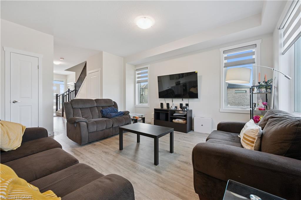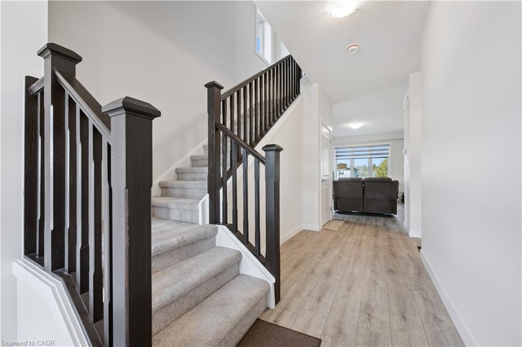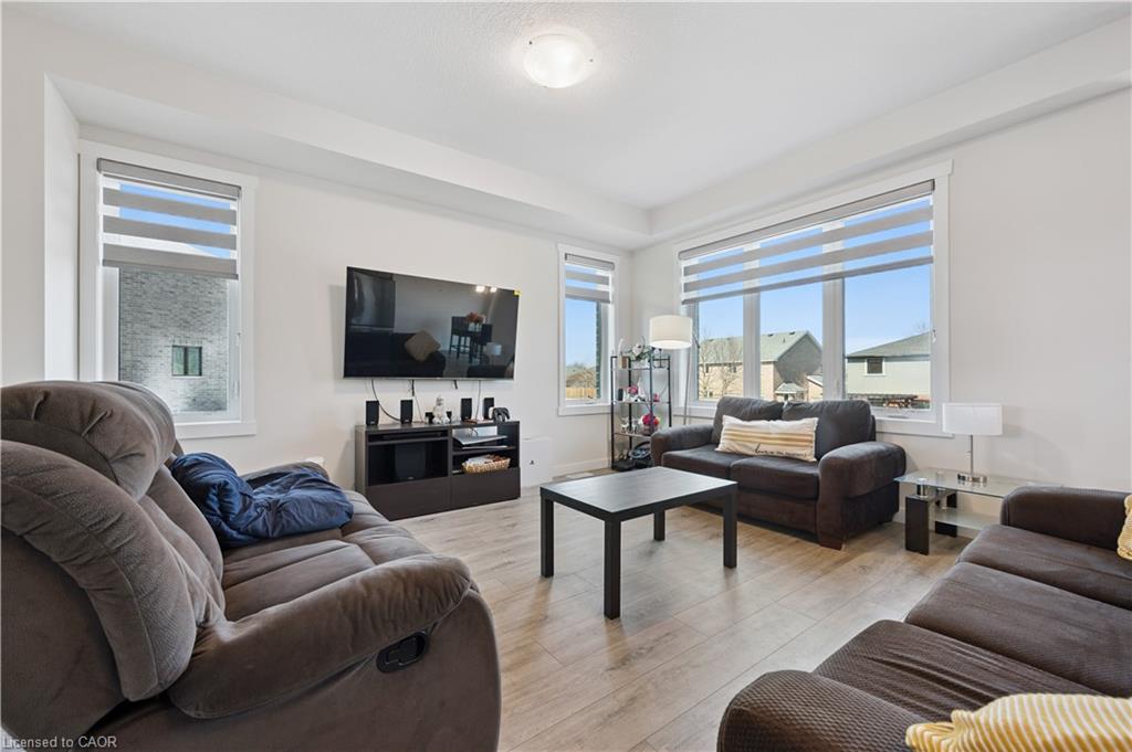 Welcome to modern living at its finest in the SOUGHT-AFTER COMMUNITY of Westwood Village! Built in 2025 by Huron Creek Developments, this stunning 1793sqft 3-bedroom, 2.5-bathroom home offers an EXCEPTIONAL BLEND OF STYLE, SPACE, AND FUTURE POTENTIAL—perfectly designed for today’s lifestyle. From the moment you arrive, the charming covered front porch invites you into a BRIGHT AND WELCOMING FOYER that opens into a beautifully designed open-concept great room. Sunlight pours through expansive windows, creating a WARM AND AIRY AMBIANCE that flows seamlessly into the contemporary kitchen—complete with sleek granite countertops, stainless steel appliances, stylish grey cabinetry, a convenient pantry, and an over-the-range microwave. The adjoining dining area features sliding doors, OFFERING THE PERFECT OPPORTUNITY to create your dream outdoor deck and entertaining space. Upstairs, retreat to a SPACIOUS PRIMARY SUITE featuring a walk-in closet and a private 3-piece ensuite. Two additional generously sized bedrooms, a modern 4-piece family bathroom, and the convenience of upper-level laundry complete this thoughtfully designed second floor. The walkout basement—boasting over 833 sqft of UNSPOILED SPACE—is a rare and valuable bonus, offering endless possibilities to customize to your needs, whether it be a future in-law suite, recreation area, or additional living quarters, all enhanced by LARGER WINDOWS AND DIRECT BACKYARD ACCESS. Set within the scenic and family-friendly Westwood Village Preserve community, you’re ideally located between Kitchener, Blair, and Cambridge—just minutes to Conestoga College, Highway 401, and a full range of shopping and everyday amenities. Surrounded by top-rated schools, parks, walking trails, and the natural beauty of the Grand River, this quiet crescent location offers the perfect balance of convenience and lifestyle. A truly exceptional opportunity to own a nearly new home in a thriving community—this is one you won’t want to miss!