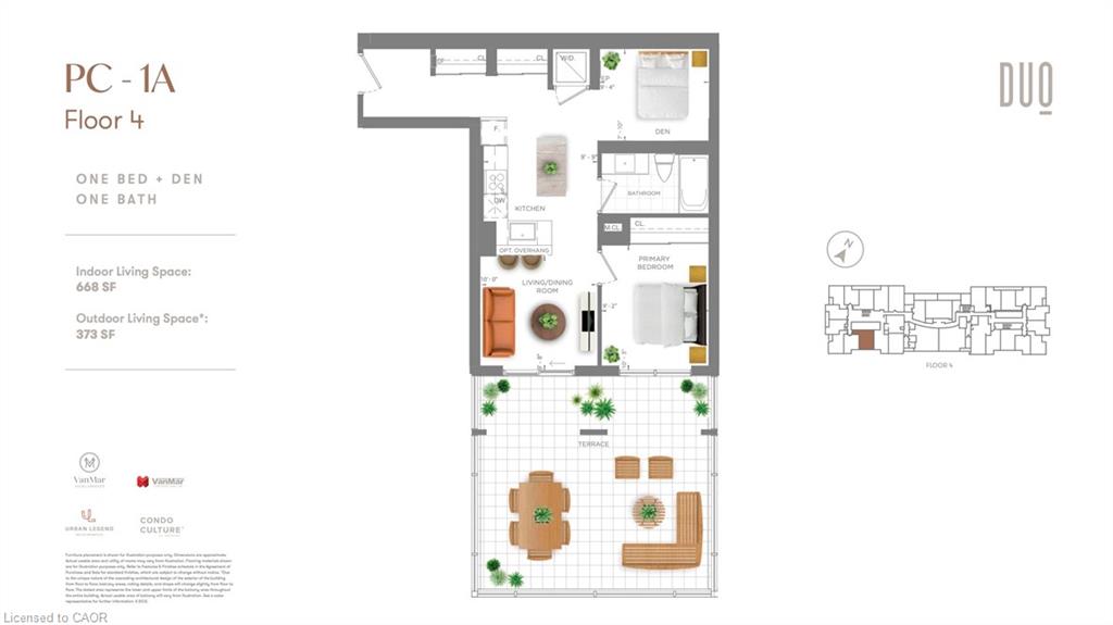NEEDING AN UPGRADE IN YOUR LIFE! LOOK NO FURTHER THAN THIS HIGHLY UPGRADED ONE BEDROOM PLUS DEN UNIT IN THE NEW PREMIER TOWER C OF STATION PARK. UPON ENTERING THE BUILDING, YOU ARE GREETED BY THE CONCIERGE IN THE HOTEL SYLE LOBBY. THE HALLWAYS ARE NICELY APPOINTED IN CALMING COLOURS. THIS UNIT HAS SOARING 10 FOOR CEILING ! THE KITCHEN HAS AMPLE UPGRADED CABINETS, A BREAKFAST PENISULA FOR 3 BAR STOOLS--NO NEED FOR A TABLE, 4 STAINLESS APPLIANCES AND QUARTZ COUNTERS. IN SUITE LAUNDRY AVAILABLE. A LARGE 4 PIECE BATHROOM, A LARGE DEN (7'10"X 9'4 ") CAN ALSO BE USED AS A 2ND BEDROOM. THE WHOLE UNIT IS TIED TOGETHER SEAMLESSLY WITH UPGRADED WIDE PLANK FLOORING. THE PIECE DE RESISTANCE IS THE LIVING ROOM WHICH EXTENDS OUT TO THE UNBELIEVABLE 374 SQ FT TERRACE WHICH OVERLOOKS THE SKY DECK!