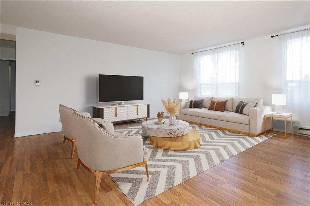 Don't miss out on this bright open concept 2 Bedroom, 2 full Bath, carpet free condo is in the desirable Stanley Park neighbourhood. Freshly painted throughout, the condo features a large living & dining area and a spacious primary bedroom with a large closet & 3 piece bath. The 2nd bedroom can also serve as a home office, guest or baby’s room. The laundry room is In-Suite with plenty of storage. Located close to Stanley Park Mall, Zehrs, Cdn. Tire, Schools, Transit plus easy access to Hwy 7/8 expressway. A short drive to Chicopee Ski & Summer Resort. Ideal for 1st time home buyers, retirees or investors! The unit includes 1 assigned underground parking space. Stay active & fit in the on-site gym, unwind in the sauna and there’s also a bike storage area. Quick closing can be available. Pictures have been virtually staged.
