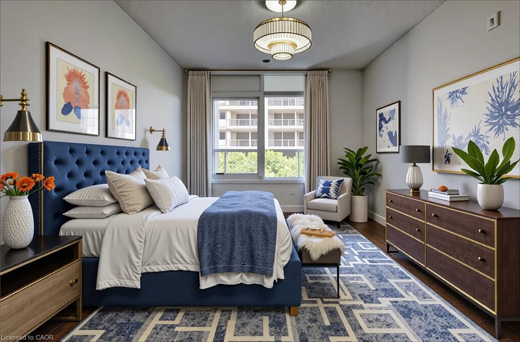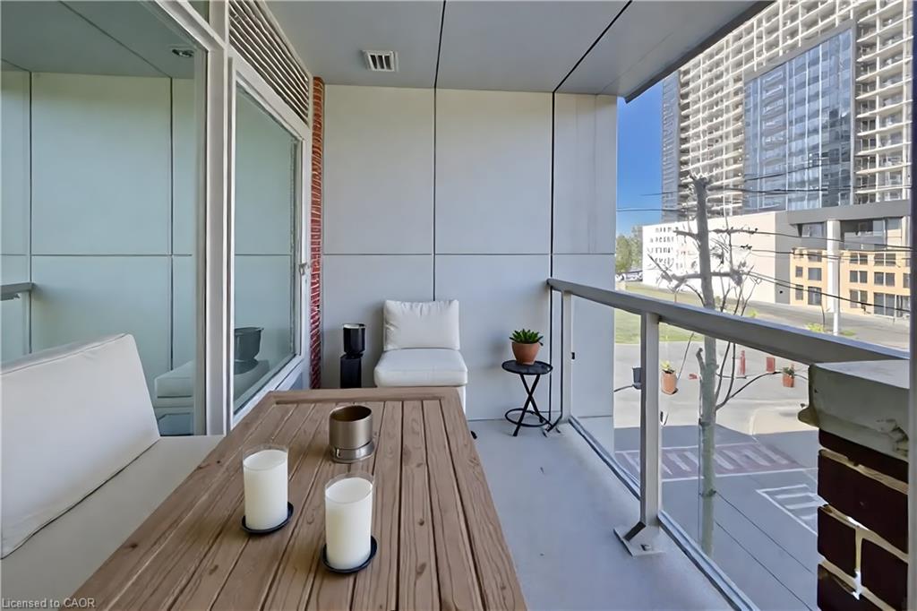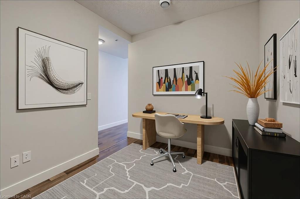 Location, Location, Location. This beautiful & modern apartment, is located in the boutique-style building "THE RED", right in the heart of Up Town Waterloo. Perfectly located & is suitable for retirees, first time home buyers or savvy investors. This unit offers a stylish and convenient lifestyle in one of the city's most desirable locations. Unit has M/bdrm with private 3 pc ensuite bath and his & hers closets. Ensuite laundry and a 2nd 4 pc bathroom, modern kitchen with SS appliances, granite counters and stylish backsplash. A bonus & versatile den that is prefect for extra space use can be home office, reading nook or extra living space. Unwind in your private balcony for afternoon teatime break or morning coffee. -Storage/Closets & large windows. Modern living at the center of Uptown Waterloo Social Life, facing the famous Bauer Kitchen, Vincenzo & Allen St LRT station. This unit has assigned use of locker for added storage needs. 4 photos are virtually staged. The upscale building offers party room for friendly gatherings, equipped exercise room and roof top patio with BBQ for every day's modern life style. Near all amenities, shopping, transport, restaurants, trails & a short drive to both Waterloo Universities & Waterloo Park plus the convenience of the (LRT) Light Rail stop infront of the building. Well maintained & managed. Shows AAA