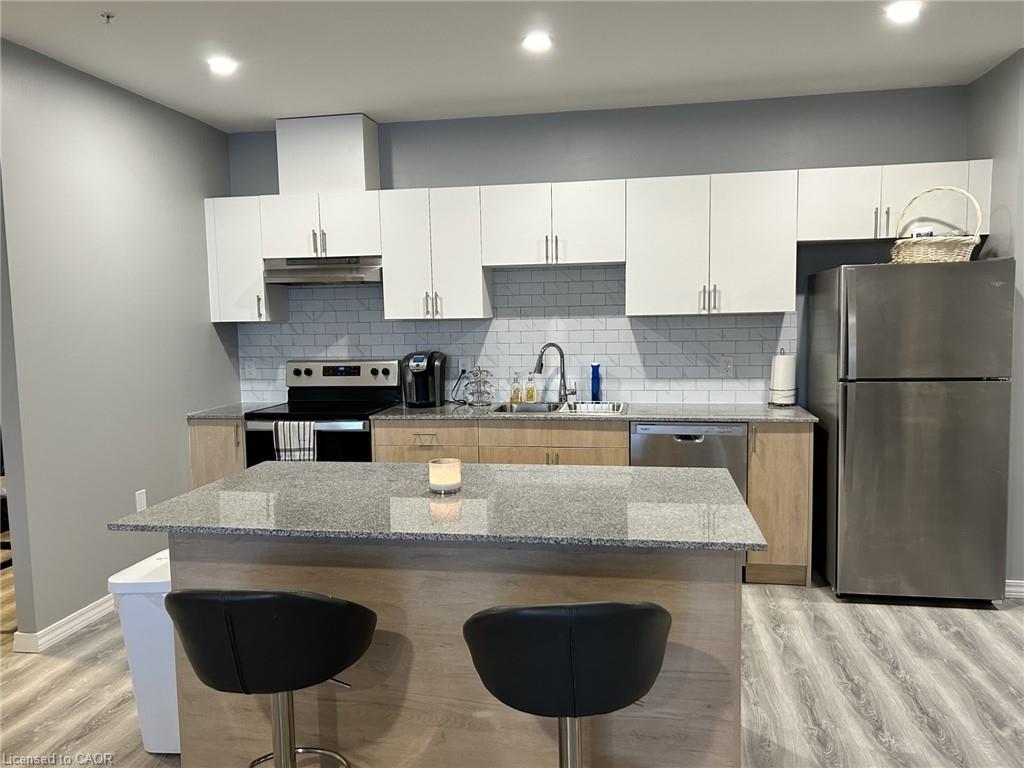 Spacious 2 bedroom, 1 Den condo located in Guelphs West End. This excellent location is mins from all major amenities including Costco and Zehrs, It is also less than a 5 mins drive to Conestoga College (Guelph Campus), and less than 10 mins to the University of Guelph. This carpet free condo offers an open concept main floor with large kitchen island and stainless steel appliances. Off the main living room is sliding door access to the large balcony, perfect for that morning coffee. The primary bedroom features a walk in closet, and 4 piece ensuite bathroom. The 2nd bedroom is just steps from the main 4 piece bathroom and the large Den is a great spot for a home office, study area or even another TV location. When complete the common areas will include a fitness room, party room, rooftop patio, bicycle storage, and outdoor areas which include a seasonal pool, multi-sport court and courtyard pergola. Some amenities may be located in the other building. Wifi included in the rent.