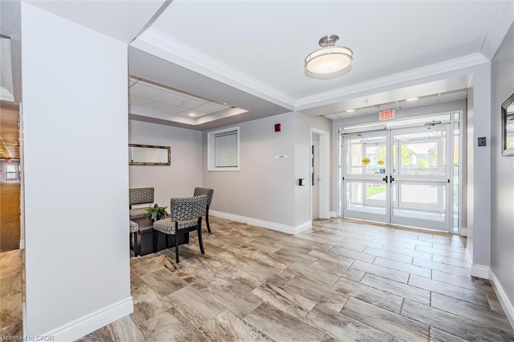 Absolutely gorgeous and move-in ready! This bright, stylish top floor, end-unit South End Guelph condo is dressed to impress with granite countertops, wood-look flooring, and soft, neutral finishes that make decorating a breeze. Offering over 810 sq. ft., it features two bedrooms and two full bathrooms, including a lovely primary suite with its own ensuite and a glass-enclosed shower. The open-concept layout feels fresh and inviting perfect for hosting friends with an updated kitchen complete with stainless steel appliances and a chic backsplash overlooking the living and dining area. Step through the patio doors to your private balcony, ideal for morning coffee or unwinding after a long day. Youll also enjoy an underground parking spot, plus building perks like a well-equipped gym, event/party room, and plenty of visitor parking. Just minutes from the University of Guelph, everyday conveniences, and the 401, its a beautiful choice for both homebuyers and investors.