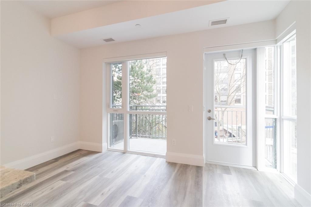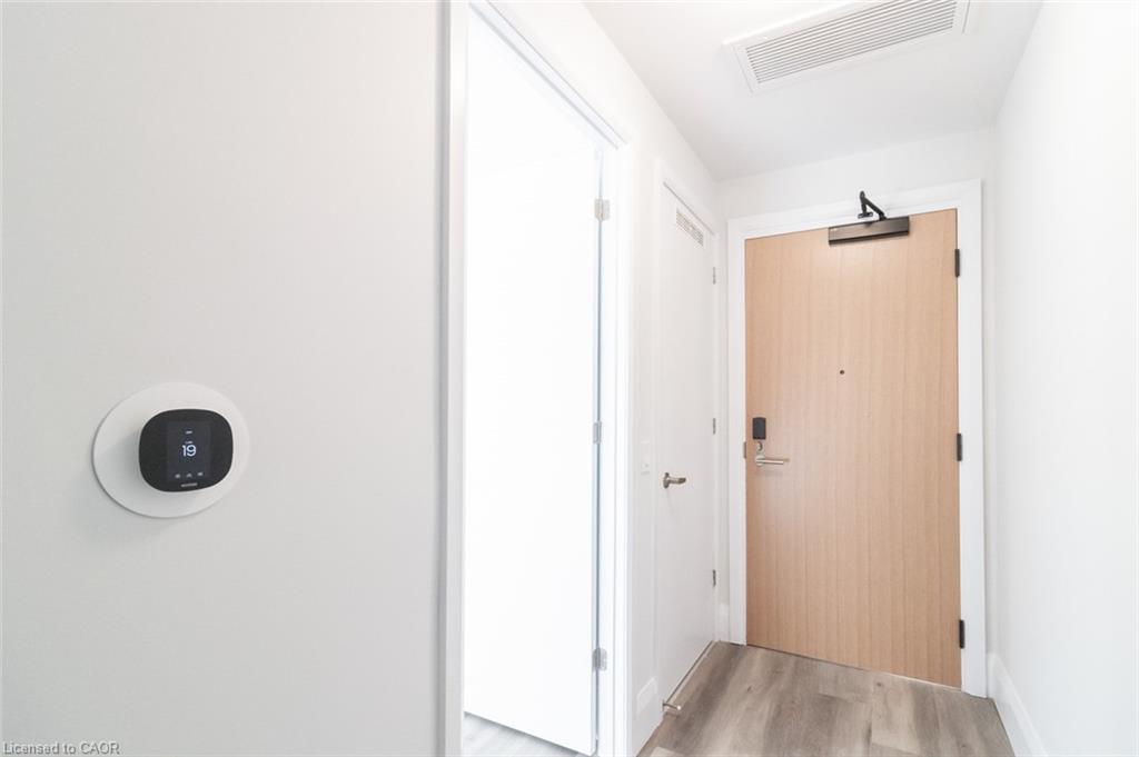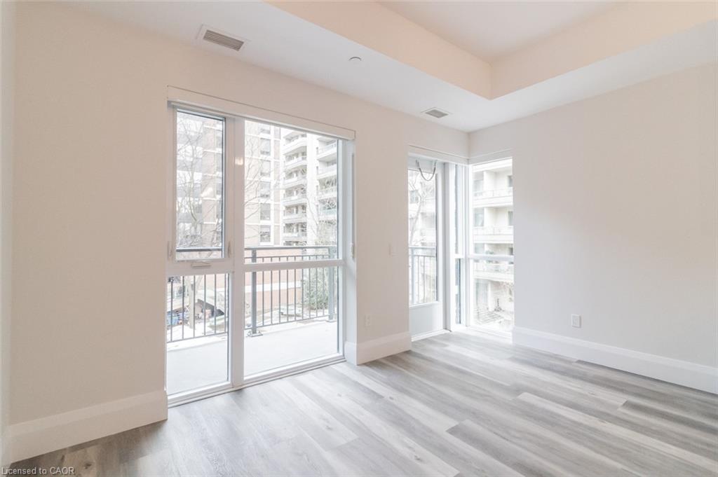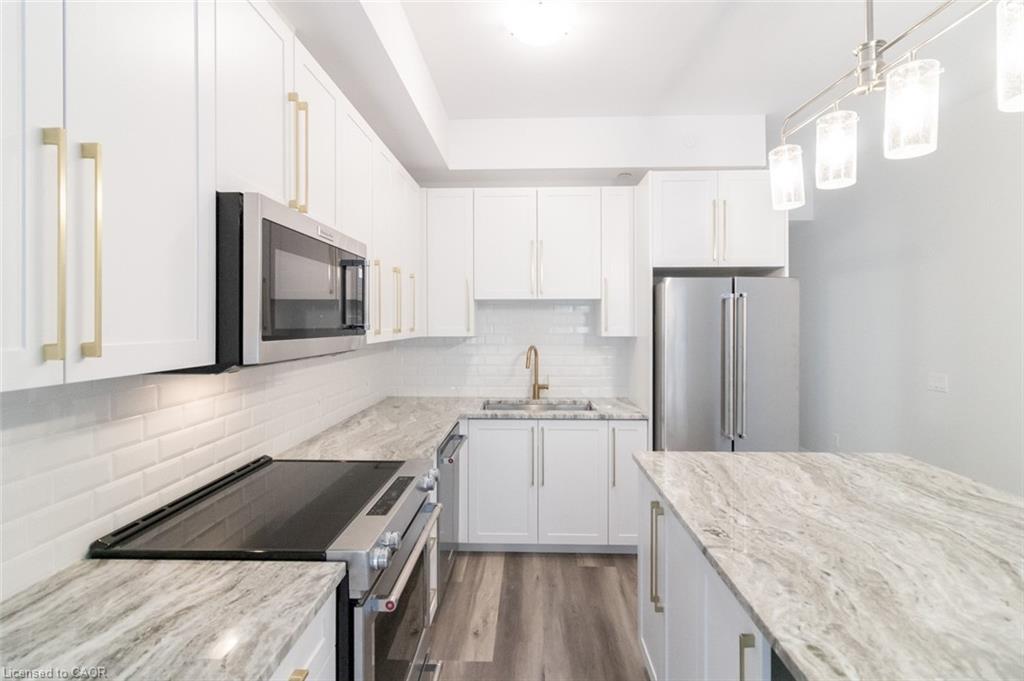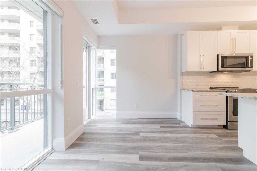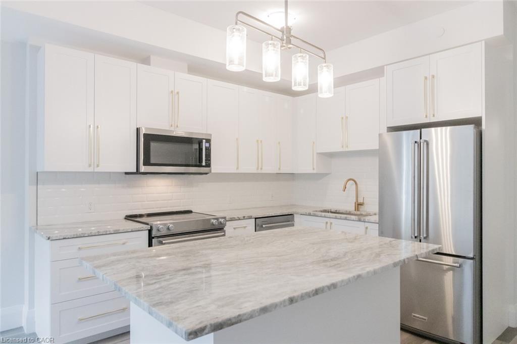 Amazing location situated right by Victoria Park. Close to the Light Rail Transit station, Innovation District, City Hall, restaurants and shops of King Street and so much more. You will love living here in this luxury condo building with secure entry, elevator access, your own private balcony in the heart of DTK. Within walking distance to all that downtown Kitchener has to offer and festivals and events during the summer, this is an ideal location to call home. This spacious 1 bedroom, 1 bath unit has upscale upgrades like a glass shower, kitchen island with breakfast bar, ensuite laundry and wide plank hardwood flooring throughout. Floor-to-ceiling, double glazed windows, double glazed balcony door. Caesarstone kitchen countertops, caesarstone seamless backsplash, Blomberg® European appliance package, including panel-ready refrigerator, dishwasher, wall mounted oven, and modern cooktop. Home automation package including smart thermostat, lighting and locking system, secure wireless internet in suites, security cameras around perimeter of the building and a pet washing station. Victoria Park features: Victoria Park Pavilion, Picnic shelter & adjacent summer kitchen, Playground & splash pad, Access to the Iron Horse Trail, Horsehoe pit & basketball court, Historic Clock