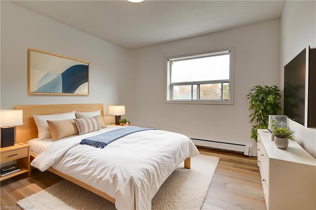 ALL-INCLUSIVE AFFORDABLE LIVING! Step into a redefined living experience with this impeccably renovated two-bedroom suite in the heart of Chicopee. Fresh from a $20,000 designer transformation, this residence perfectly captures the "move-in ready" dream, blending high-end aesthetics with unbeatable monthly value. Your all-inclusive condo fees cover hydro, water, and gas, paired with low property taxes to ensure a streamlined, worry-free lifestyle. The chef-inspired kitchen stands as a modern masterpiece, showcasing dual-tone soft-close cabinetry accented by sleek matte black hardware. Dramatic Bianco quartz countertops flow into a matching full-height quartz backsplash, creating a seamless and sophisticated culinary hub complete with a designer beadboard accent wall and an oversized double sink. Throughout the home, luxury vinyl flooring provides a durable, waterproof foundation that glows under all-new contemporary lighting. Escape to the refined bathroom, featuring a custom vanity topped with stunning Calcatta Ice quartz for a true spa-like feel. The entire suite has been professionally painted in a crisp, airy palette that highlights the abundance of natural light. Beyond the unit, the building has been meticulously maintained with recent upgrades to the exterior and balcony guards. Situated just moments from the Chicopee Ski & Summer Resort, the Grand River trails, and major commuter arteries like the 401 and Hwy 8, this property offers a premier lifestyle with exclusive-use parking. Whether you are a first-time buyer or looking for a savvy rent-to-own opportunity, this suite represents the pinnacle of modern sophistication in Kitchener. SELLERS WILL CONSIDER RENT TO OWN!
