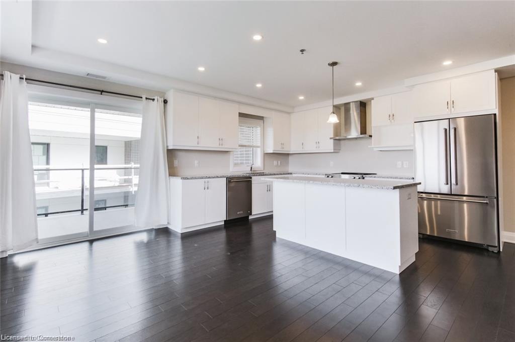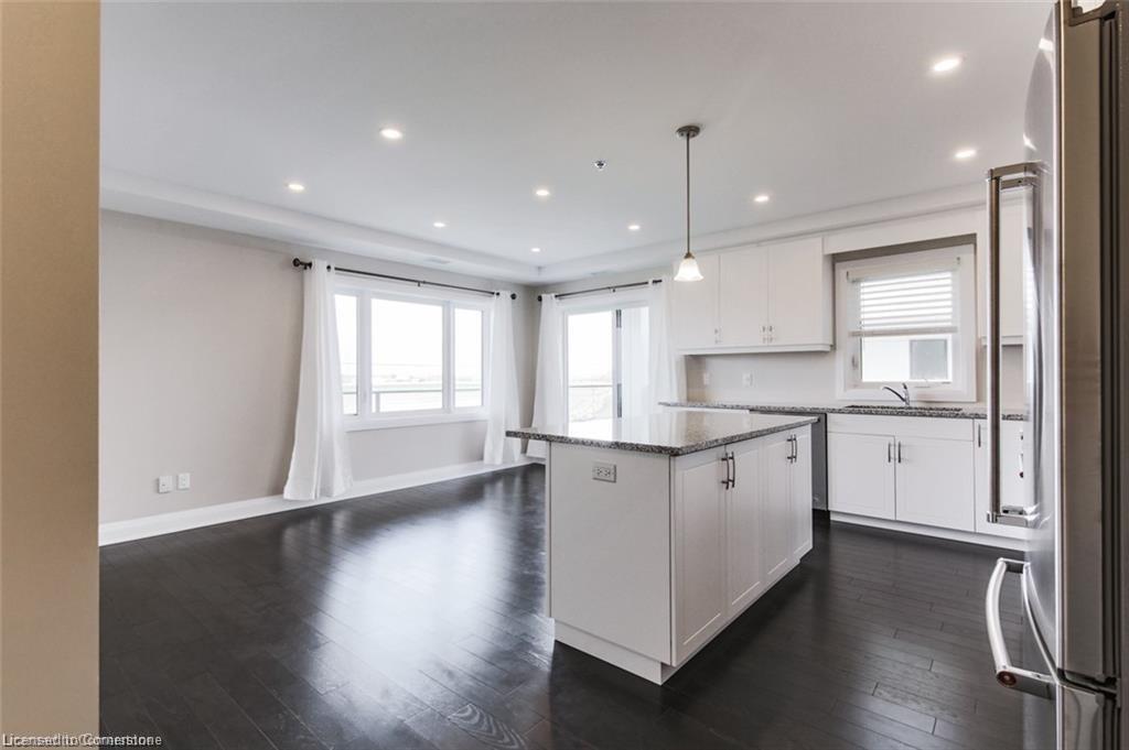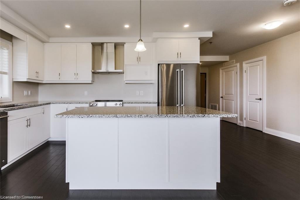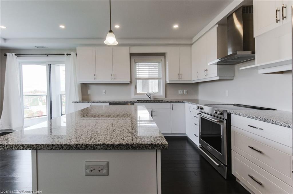 Welcome to 406-245 GREY SILO. There are 2 Parking Spots! This Unique Penthouse is located in the highly sought after Trailside of Grey Silo. Starting at the front foyer this area is tied together seamlessly by beautiful dark hardwood floors. The contrasting upgraded white kitchen has a large granite top island and ample cupboards, an upgraded GRANITE SINK and upgraded stainless steel appliances and soft close drawers. The large wrap around covered balcony overlooks the most peaceful scenery of the countryside and is positioned so that you can watch the sunrise and sunset. Each room has large windows which floods the unit with natural light. There are 2 large bedrooms and 2 full baths and so much storage which is hard to find in condo lifestyle living. For the outdoor enthusiast--run, walk or bike THE WALTER BEAN TRAIL, GOLF AT THE GREY SILO GOLF COURSE, and you are just a short drive to the St Jacob's Market. The amenities included breath taking views from the roof top GARDEN which has a BARBEQUE AREA and SEATING AREA. This unit comes with 2 ASSIGNED PARKING SPOTS, one underground and one surface. THE DOUBLE STORAGE UNIT IS AMAZING! Don't miss this opportunity to Live and Relax at the TRAILSIDE OF GREY SILO. TENANTS are responsible for: gas, water and hydro, internet and tenant insurance.