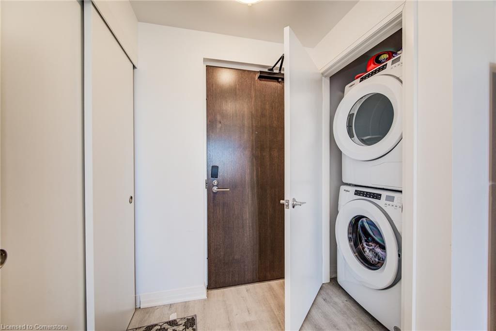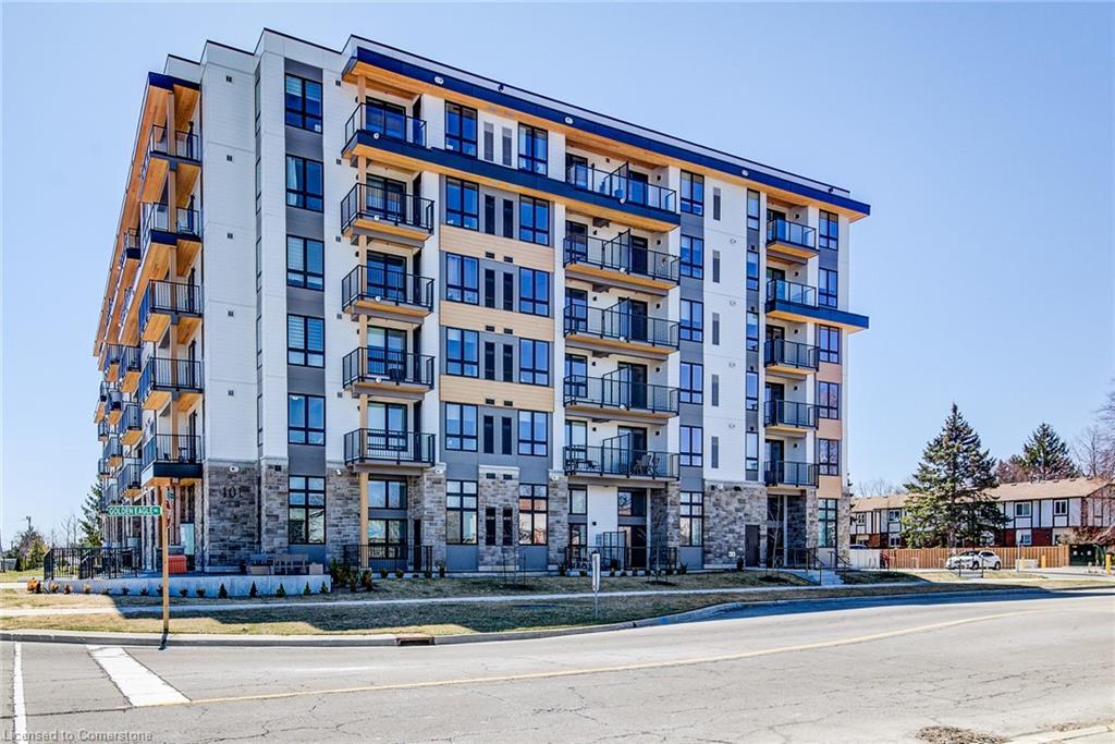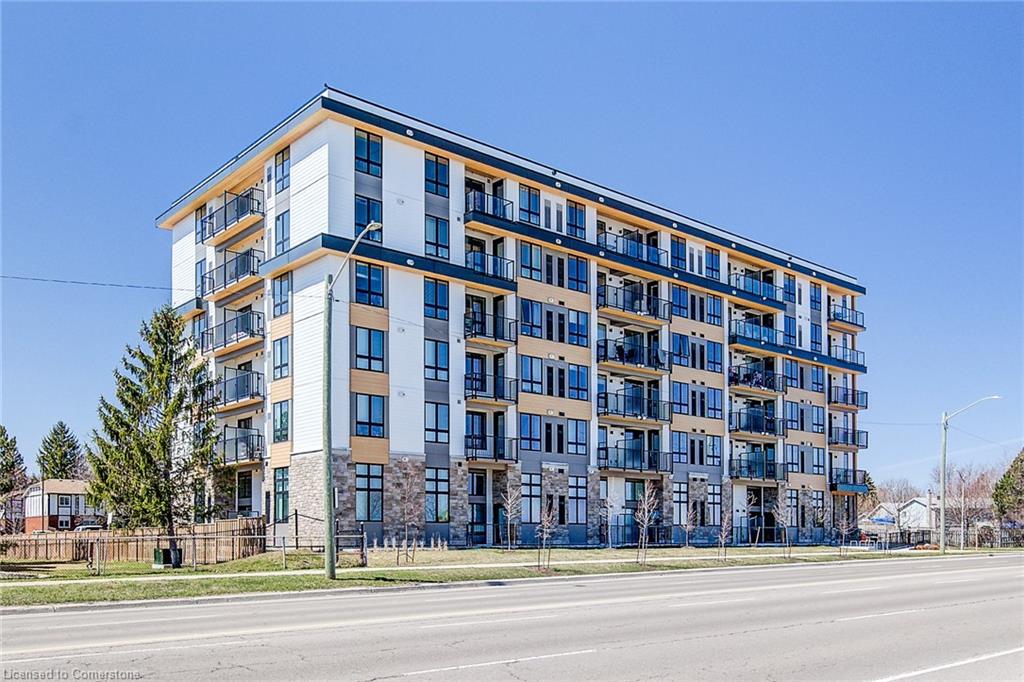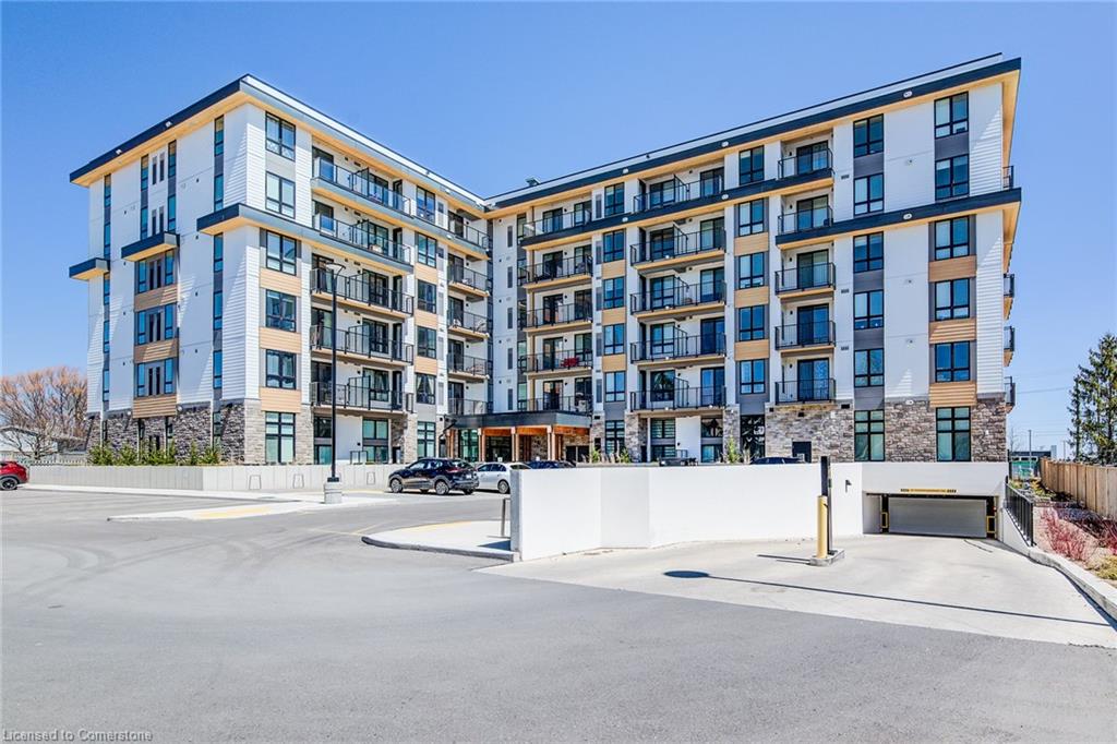 Welcome to Unit 407 at 101 Golden Eagle Road.,Waterloo. A modern and efficient 1-bedroom, 1-bath condo offering 557 sq ft of thoughtfully designed living space. Perfectly suited for first-time buyers, professionals, or investors, this fourth-floor unit combines contemporary finishes with unbeatable convenience. Enjoy the open-concept layout highlighted by 9-foot ceilings and durable vinyl flooring throughout. The sleek kitchen is equipped with stainless steel appliances, quartz countertops, and modern cabinetry, flowing seamlessly into the bright living area with direct access to a private balcony – perfect for morning coffee or evening relaxation. The spacious bedroom and 4-piece bath provide comfortable living, while in-suite laundry adds everyday convenience. This unit also includes one underground parking spot, plus access to visitor parking for guests. Situated in a sought-after Waterloo location, you’re just minutes from St. Jacobs, shopping, dining, public transit, and other local amenities, making this a smart lifestyle or investment choice. Don’t miss your chance to own this modern gem in a vibrant community.