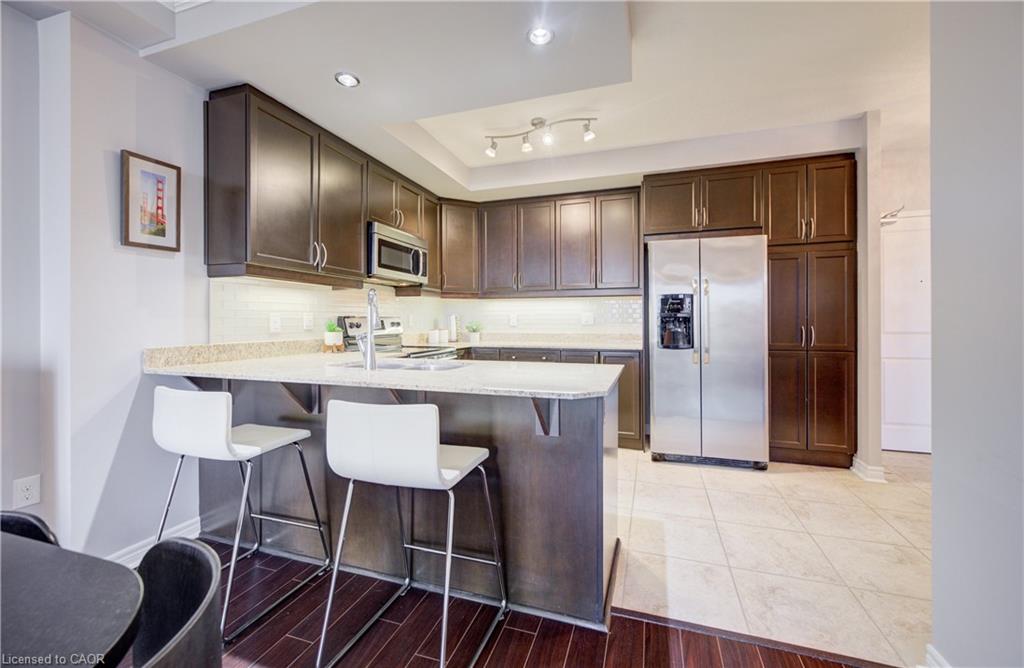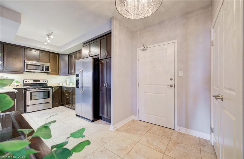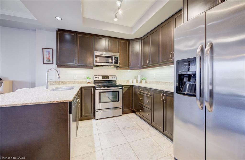 A rare find — a condo with over 1,000 sq ft, 2 bedrooms, and 2 full bathrooms, with heat, water, and A/C included in the condo fees, offering predictable monthly living in the heart of Belmont Village. A spacious entry opens to an inviting flow from kitchen to dining to living room, featuring an electric fireplace that adds character, and leading to a private west-facing balcony perfect for evening sunsets. The kitchen features stone countertops, stainless steel appliances, and ample cabinetry. The primary bedroom offers room to comfortably accommodate a full furniture set, along with a walk-in closet & private ensuite. A well-proportioned second bedroom and full bathroom provide flexible space for guests or a home office. In-suite laundry, generous closet space, underground parking, and a storage locker — a valuable feature not found in all units — add everyday convenience, with additional parking often available for rent. This well-maintained, professionally managed building offers excellent amenities including an exercise room, media room, games room with library/lounge, two party rooms, guest suite, secure bike storage, and a courtyard BBQ patio. Steps to parks, the Iron Horse Trail, Belmont Village cafés and shops, transit, and minutes to Uptown Waterloo and Downtown Kitchener. Ideal for downsizers, first-time buyers, or investors seeking space and low-maintenance living in a vibrant neighbourhood.