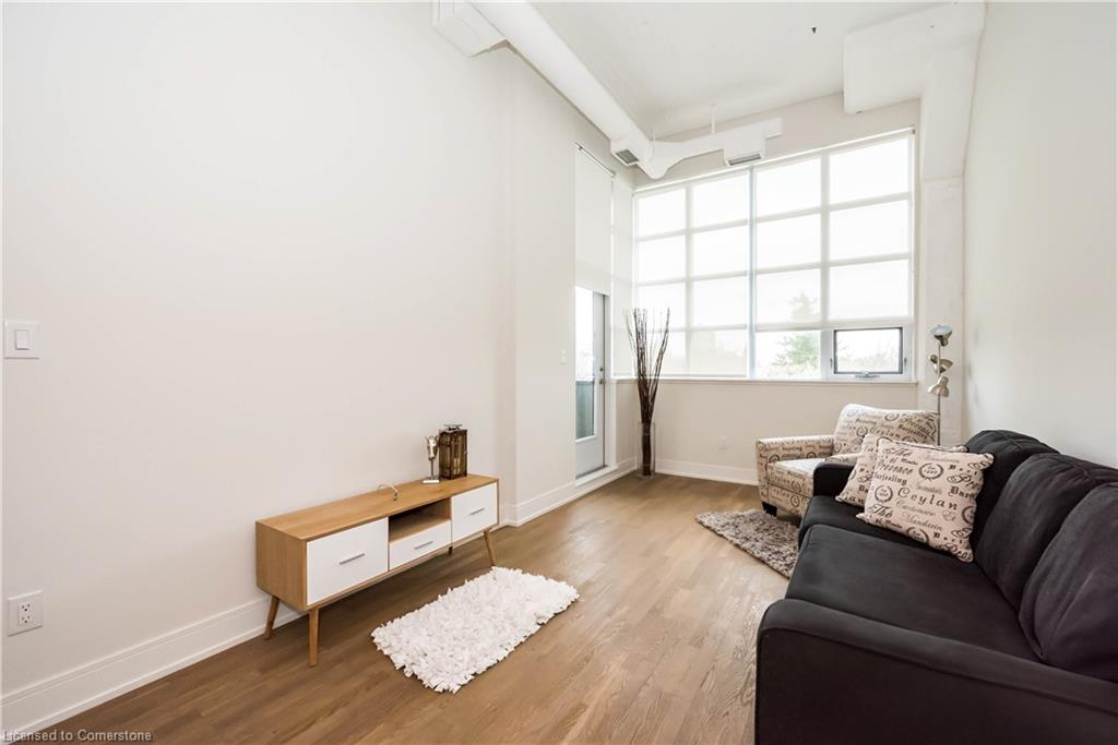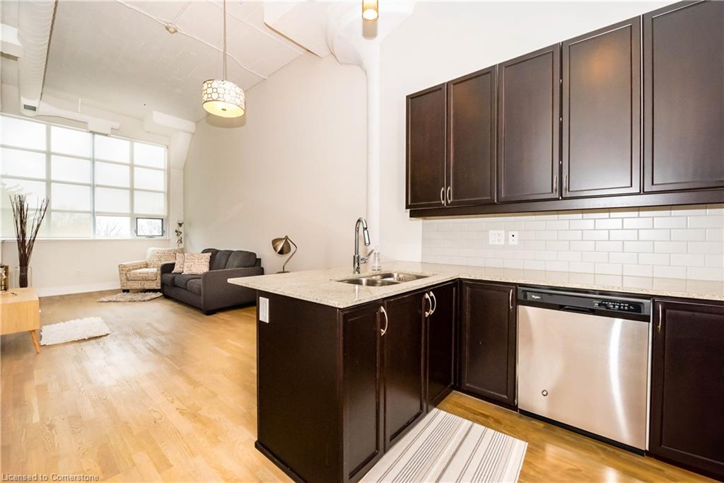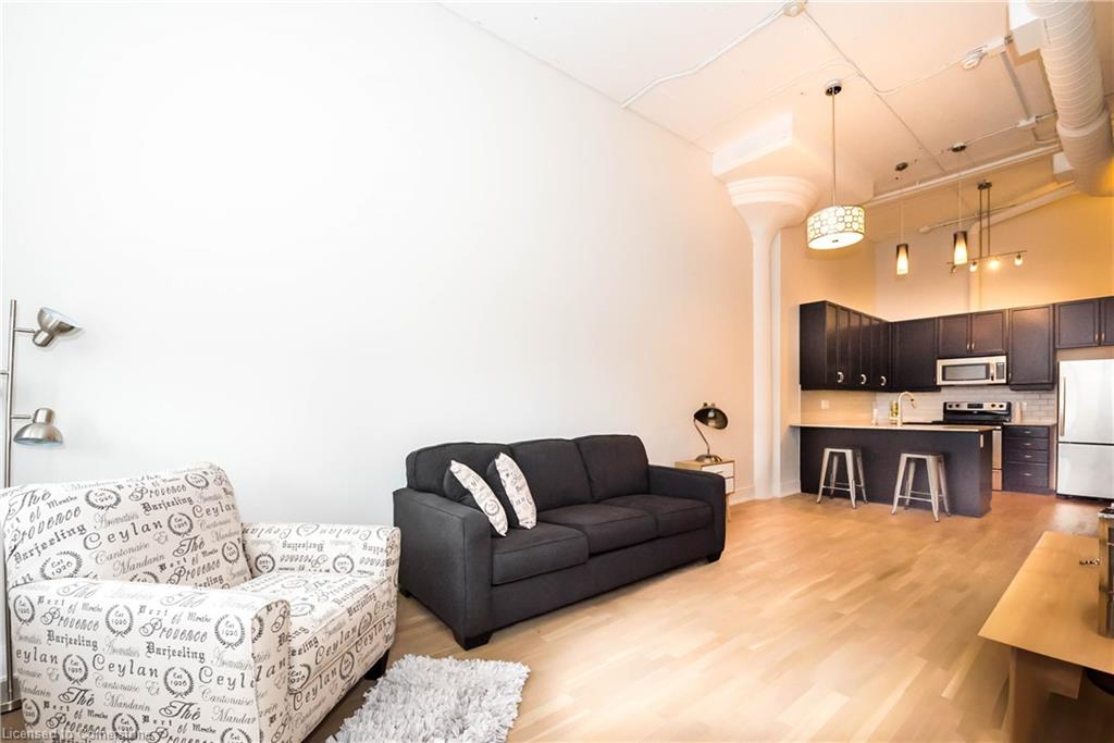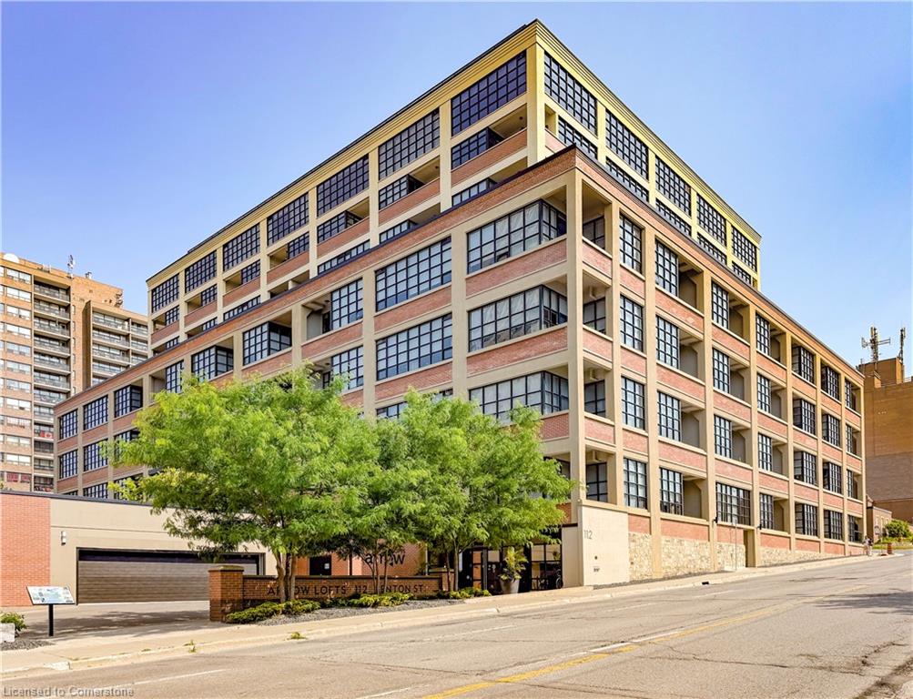 This very spacious 1 bedroom condo on the 4th floor features soaring ceiling heights, huge windows for massive amount of natural light. Kitchen equipped with stainless steel appliances, quartz counter tops and lots of cupboard spaces. Also hardwood flooring throughout main living space and 1 parking spot included. Large bedroom with cozy carpet flooring and a deep walking closet. A semi-enclosed balcony is just right off the living room, amazing for summer nights looking at the stars! In-suite Laundry is also included! Arrow Lofts offers the Best Amenities in KW! Conference room, Library, Theatre, Fully equipped gym, Lounge room, Roof top BBQ are some of the amazing amenities offered here that you will not find in other condos in KW. Arrow Lofts is also in the heart of the city and just steps to Downtown and a wide variety of daily amenities such as restaurants, shopping, parks and schools.