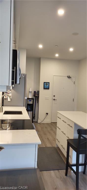 Updated condo for rent in the Modern Blackstone complex. Enjoy all the amenities that condo living offers. Full access to the gym, the party lounge, and the bike storage room. In the summertime take advantage of the beautifully furnished roof top patio, equipped with BBQs and a gas fire pit. This unit features upgraded quartz countertops , large 4 piece bath, walk-thru closet to cheater ensuite, island and en-suite stacked washer/dryer combo. 1underground parking spot is included. In close proximity to St. Jacobs farmers market, Conestoga Mall, expressway exit, LRT, RIM Park, and walking and biking trails.
