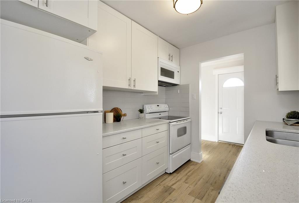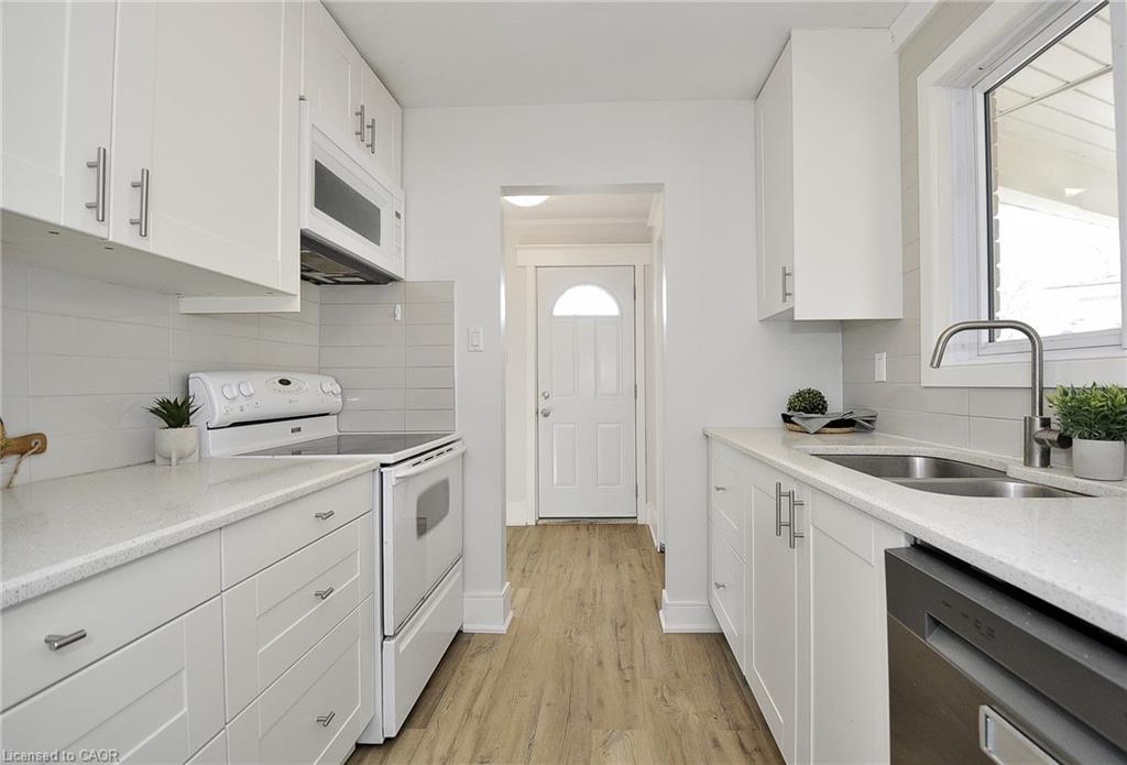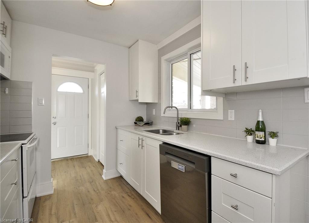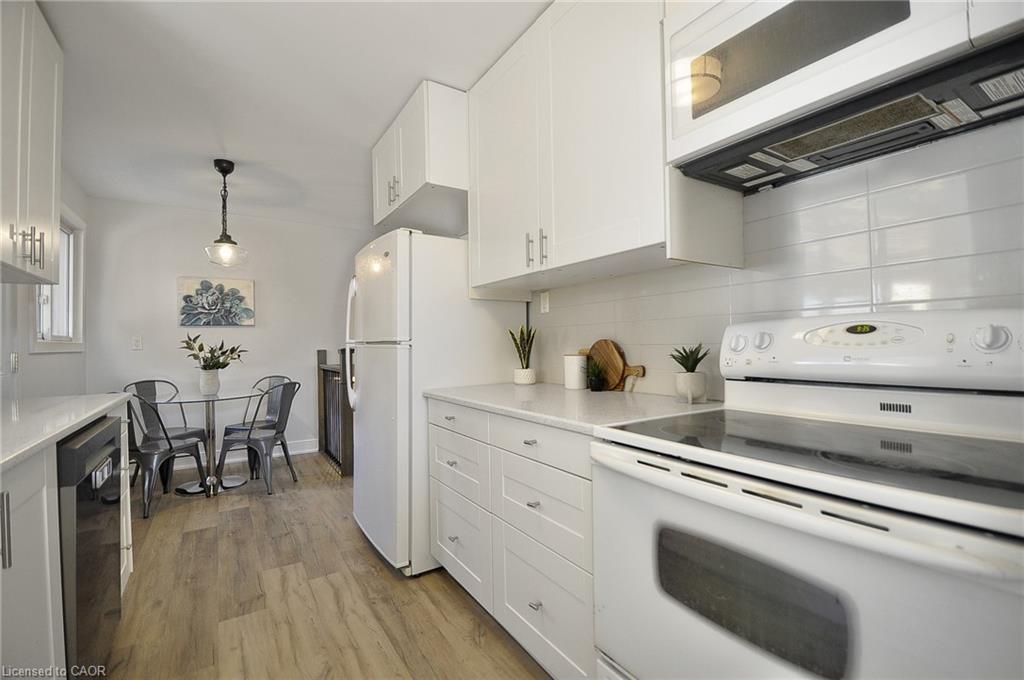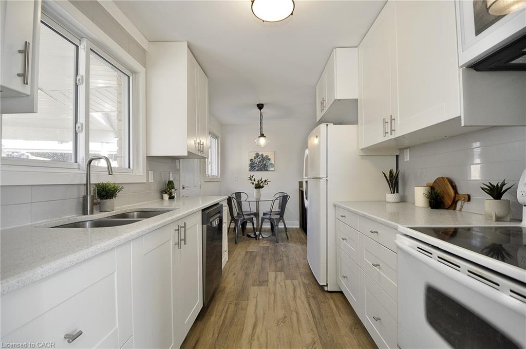 Family friendly & highly sought after Hespeler court location on large, private, pie shaped fenced lot with shed and gazebo. Easy walk to schools, parks and amenities. Speed River, Forbes Park & Downtown Hespeler are just a short hike away too, boasting independent eateries, retailers, and community events with small town community atmosphere. Quick access to big box retail and the 401. Great spot for commuting east to the GTA, or around the Golden Horseshoe, (10-15 minutes to Guelph and KW). Trails, river, farm markets with fresh produce, Cambridge Butterfly Conservatory; lots going on close by. Newer home, 1982. Modern construction and materials. Completely renovated in 2019 including; basement windows, electrical panel upgraded to 200 amp service, luxury 3 piece bathroom added in basement, tile flooring in upstairs bathroom, IKEA kitchen cabinetry, quartz counter top, luxury vinyl flooring throughout (home is carpet free), all baseboard, trim and freshly painted, 2026. Other updates include stairs and railings, fencing, retaining wall and landscaping, composite front porch, air conditioner 2020, Nest/ Smart phone control for heat and A/C. Split level layout provides above average size for a semi and living space on 3 floors, 1050 sf. above grade, over 1450 sf. of finished living space. Functional and bright main floor layout with separate side entrance includes unique tongue and grove pine ceiling for a cozy, rustic feel. Basement rec-room w gas fireplace could be a 4th bedroom/in-law space. Laundry, storage space down for hobbies'/additional storage/workbench or kitchenette. Huge crawl space for dry storage. Includes covered carport parking and room for 3 cars in tandem. New driveway 2026. Includes all window blinds and appliances. Move in ready, immediate possession available. Great family home on a court in a really nice neighbourhood.