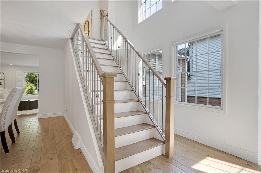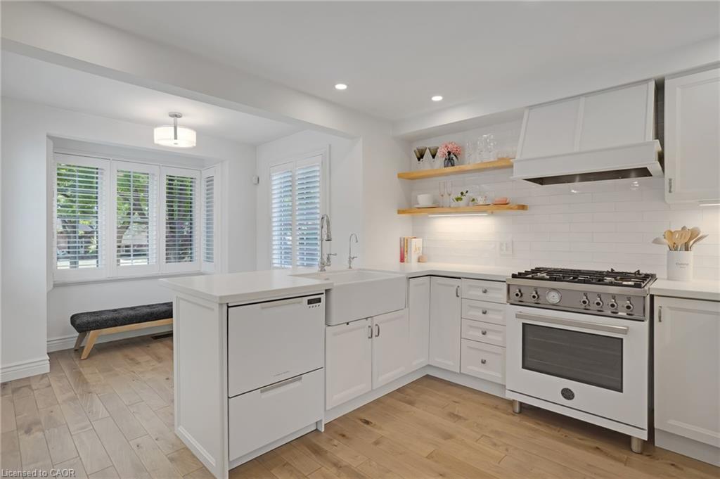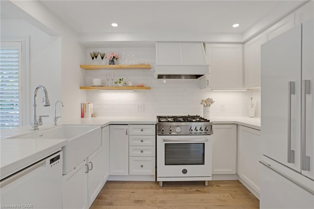 Welcome to 41 Quinte Crescent! This rare detached condo backs onto Chicopee Ski Hill and blends a private freehold feel with worry-free condo living. This carpet-free home has numerous luxury finishes such a hand-scraped maple hardwood, California shutters, sleek-touch dimmable lights and large sunlit windows. The living room offers a cozy gas fireplace and a walkout to a private patio and garden. The updated kitchen features quartz counters, a farmhouse sink, under-cabinet lighting, pot lights, Fisher & Paykel appliances, and a chef-inspired Bertazzoni gas range. The dining room is designed for connection, with easy access to the kitchen and a view into the living space. A stylish and updated three-piece bath with a marble countertop completes the level. Upstairs the hardwood continues through two bright and specious bedrooms. The primary suite offers abundant natural light, dual closets, and scenic views. The updated five piece bath includes double sinks and a tub and shower combination. The lower level provides laundry, generous storage, high ceilings, a two piece rough-in, and the potential to easily finish the space to your imagination. Enjoy the serene setting, the community pool, ample visitor parking, and the convenience of exterior maintenance and snow removal included in the condo fees. Parks, trails, Chicopee Ski and Summer Resort, the Grand River, nearby shopping, and quick and easy access to the Expressway and Highway 401. A move in ready home in a location that feels like a retreat!