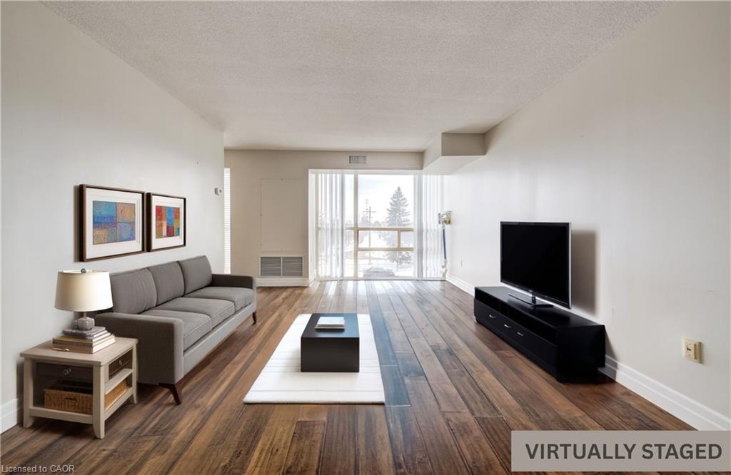 The thoughtfully updated flooring provides a clean, modern look while making day-to-day maintenance simple and easy. The kitchen offers ample storage space and the dinette nook is perfect for breakfast and your morning coffee. The primary bedroom is a true retreat, featuring two closets and a renovated ensuite bathroom with a convenient sliding glass shower door. A second updated 4-piece bathroom offers comfort and accessibility for guests or family visits. The spacious 2nd bedroom is ideal as a guest room or a home office. Enjoy the convenience of in-suite laundry, two owned parking spaces, and a large main-floor storage locker, ideal for seasonal items. This well-managed building offers outstanding amenities designed for comfort and community, including controlled entry, a library, workshop, bicycle storage, covered parking, and a beautiful rooftop lounge and sun deck. Two fully equipped party rooms provide wonderful spaces for gatherings and celebrations. Ideally located close to shopping, restaurants, medical services, and scenic walking trails, with easy access to Highway 7/8 and Highway 401, this home offers the perfect balance of peaceful surroundings and everyday convenience. A wonderful opportunity to enjoy a relaxed, secure, and low-maintenance lifestyle in one of Waterloo’s most sought-after condo communities.