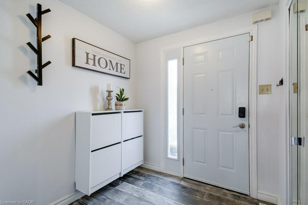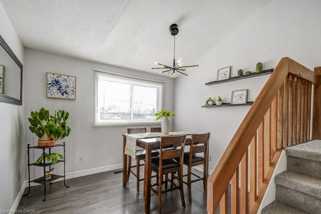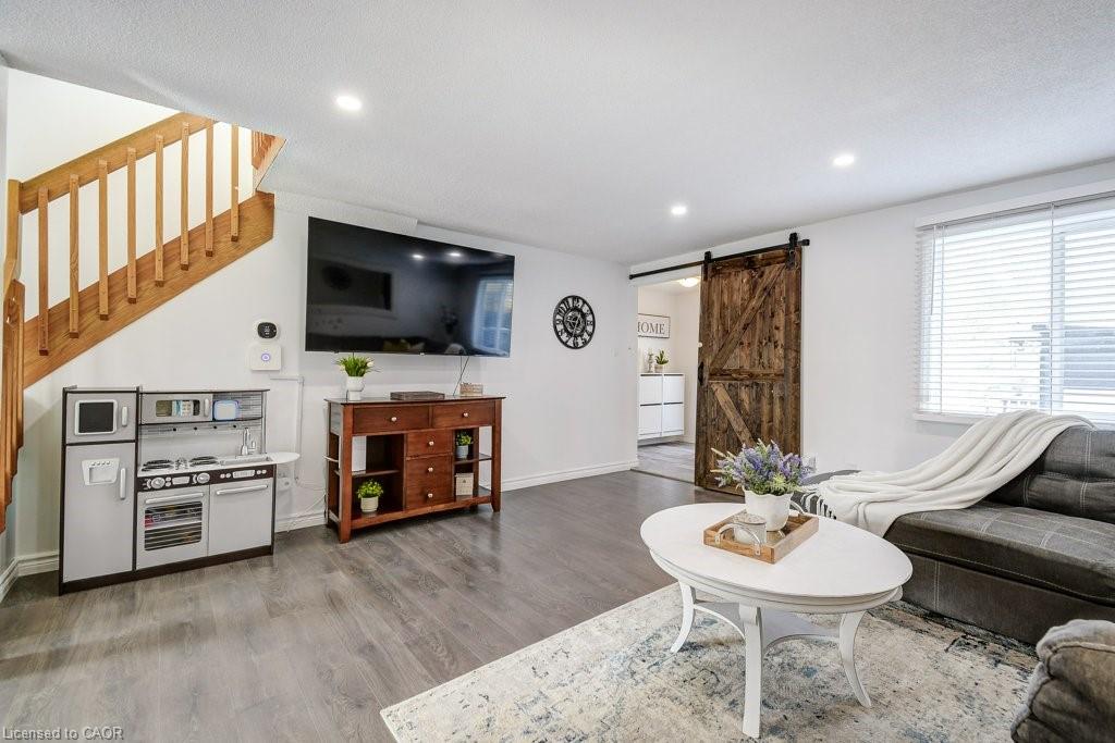Opportunity is knocking! This bright and inviting freehold townhome offers a spacious layout and vibrant interior - perfect for entertaining family and friends. You'll love the easy flow of the main level which comes complete with a generous living room as well as a dining area with a vaulted ceiling and stylish light fixture. The fully remodeled kitchen with crisp white cabinetry, additional pantry and stainless steel appliances make it both stylish and functional. Upstairs, you’ll find three good-sized bedrooms and an updated 4-piece bathroom. This home has been freshly painted throughout and features brand new vinyl flooring and plush carpeting on the stairs. A large unfinished walk-out basement offers an ideal blank canvas for future living space and includes a rough-in for a second bathroom. Step outside to a large partially fenced backyard perfect for kids to play or simply just relaxing in the sun. Two new sheds provide outside storage space. A beautifully stamped concrete front patio and a freshly paved driveway (2022) with carport accommodates up to three vehicles. Enjoy peace of mind with several recent upgrades, including a newer furnace, humidifier, and smart thermostat (2021), all with transferable warranties. Additionally, the home comes equipped with a Ring security system which will be staying with the house. Ideally located in a family friendly neighbourhood close to parks, shopping, schools, and is just minutes from Highway 401. This property is a fantastic opportunity you won’t want to miss. Book your showing today!