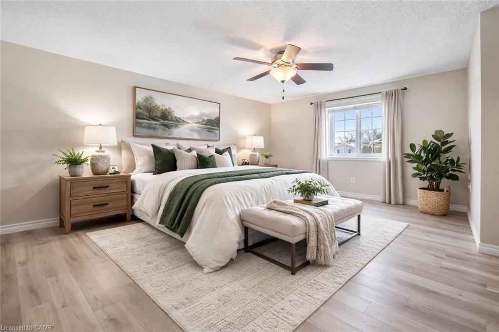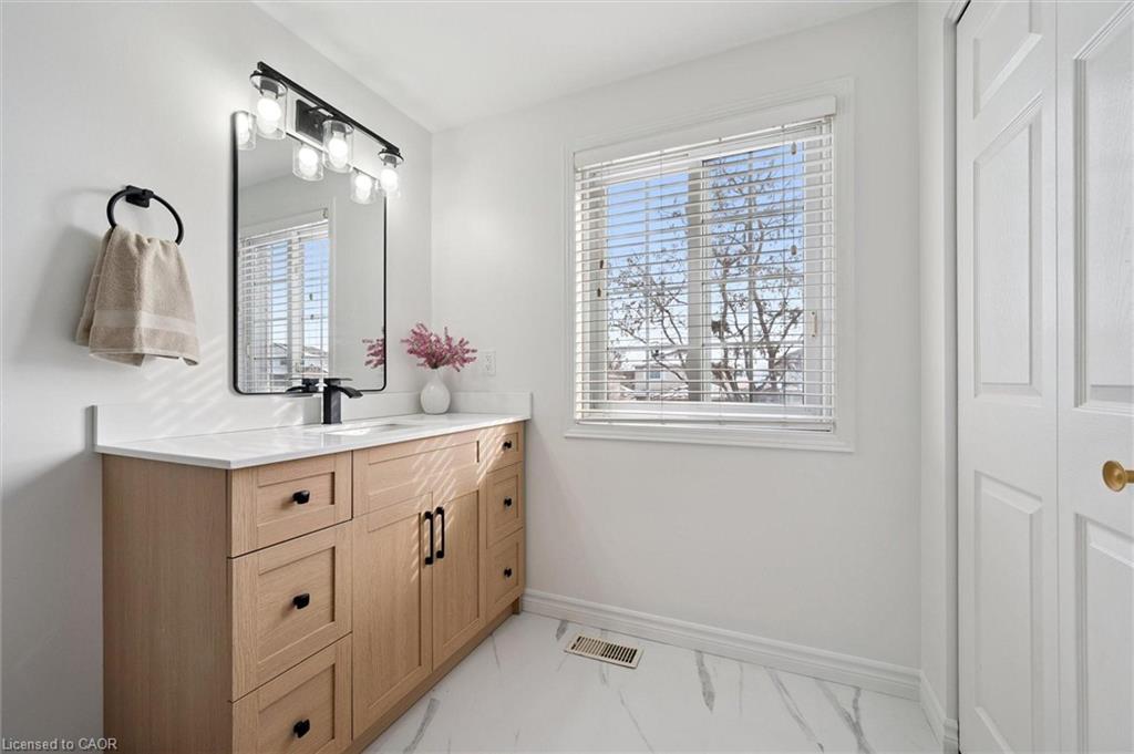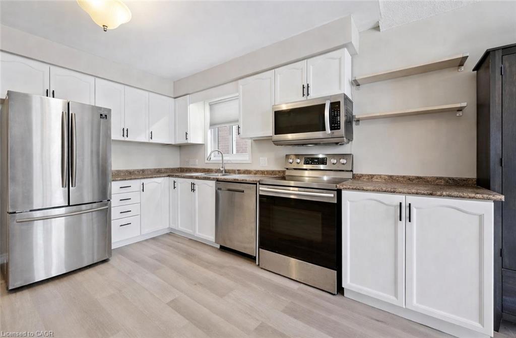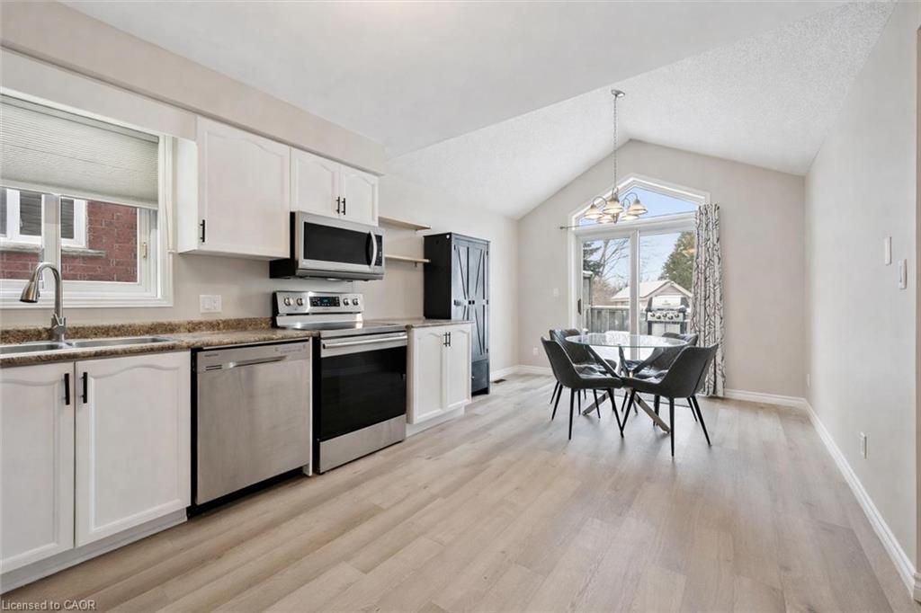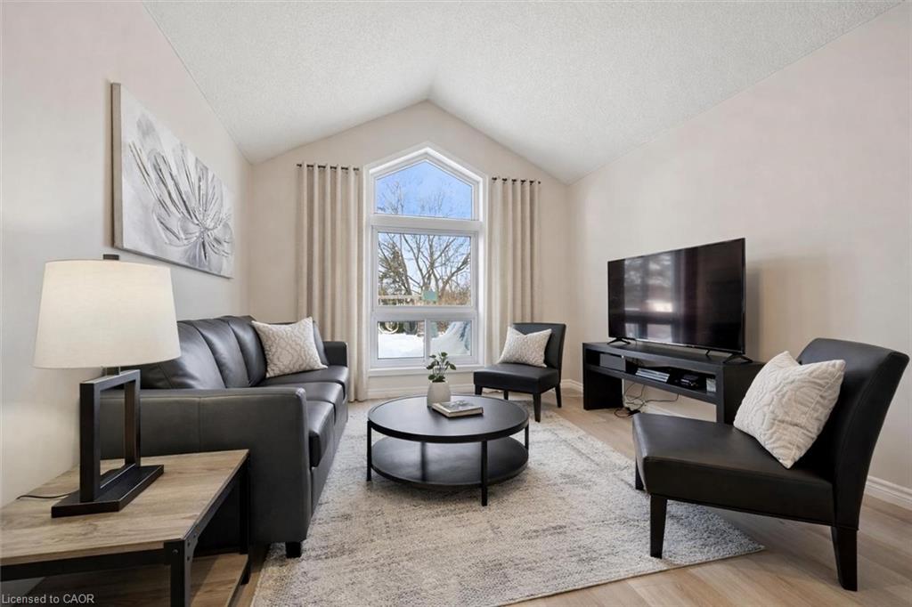 Welcome to 42 Tara Cres, an updated 3-bedroom home with finished basement backing onto Rittenhouse Park & situated on a quiet crescent in a highly convenient, family-friendly neighbourhood! Upon entering, you’re welcomed by bright & inviting living and dining room with stylish white oak-inspired luxury vinyl plank flooring & vaulted ceiling with large window that provides scenic backyard views while allowing lots of natural light to fill the room, creating the perfect setting for relaxing or hosting guests. Updated kitchen offers fresh white cabinetry, ample counter space & S/S appliances. Dinette area also features a vaulted ceiling & sliding doors leading to the backyard, creating a beautiful backdrop for enjoying morning coffee or summer meals outdoors. Convenient 2pc bathroom completes this level. Upstairs, you’ll find 3 generously sized bedrooms, each with large windows & plenty of closet space. Renovated 4pc bathroom features chic vanity with quartz countertops, marble-inspired tile, shower/tub combination & an additional storage closet. Finished basement provides valuable additional living space, highlighted by a large recreation room that is ideal for a home gym, playroom, office or media area. Step outside to a large deck overlooking a generously sized backyard that backs onto beautiful mature trees, creating a peaceful & private setting. Fully fenced yard offers plenty of space for children & pets to play, along with room to garden, entertain or simply relax & enjoy the surrounding greenery. This home backs onto Rittenhouse Park offering green space, playgrounds, sports fields & network of walking trails right at your doorstep. Just two homes down, you’ll find direct access to the park with pathways that lead to Glencairn Public School & Catholic Cardinal-Léger School—perfect for families. You’re also just seconds from nearby shopping centre with groceries, restaurants, fitness centre & everyday conveniences, along with easy access to Hwy 8 for commuters.